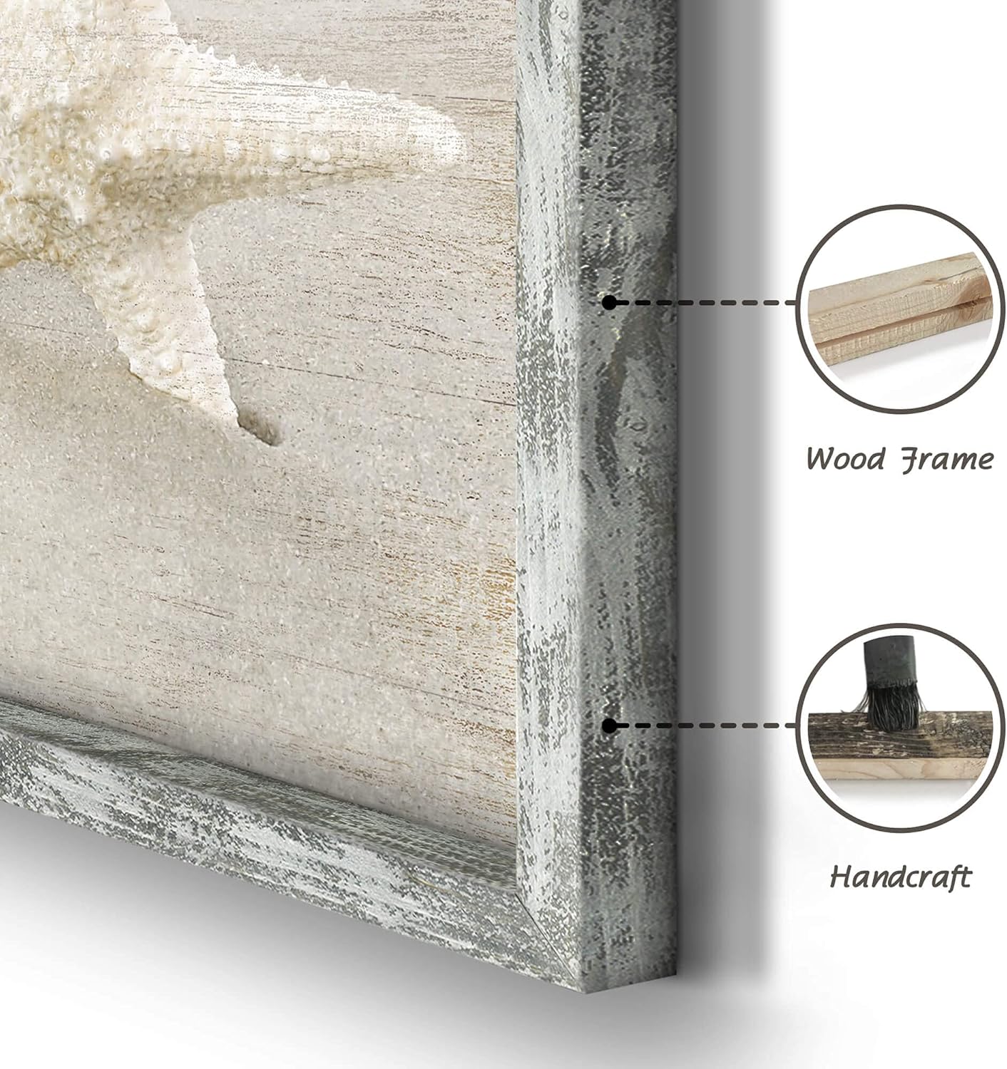 Coastal Framed Wood Wall Art: Beach Picture Seascape Artwork Seaside Prints Starfish Boardwalk Art Collection Wall Decor Set of 4 for Bedroom