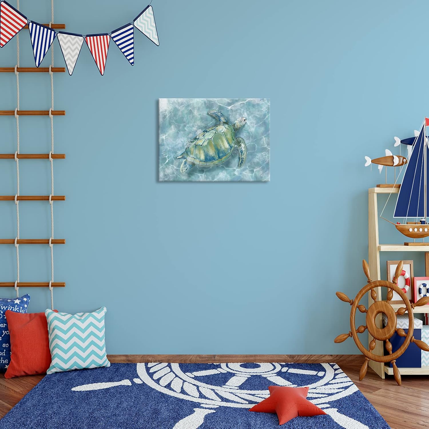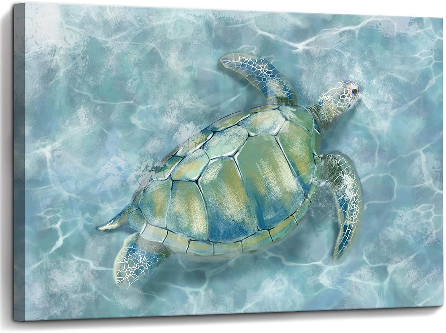 YJYart Bathroom Wall Decor Canvas Wall Art for Bedroom Sea Turtle Pictures Blue Coastal Room Decorations Artwork Green Turtle Wall Decorations 16” x 24”