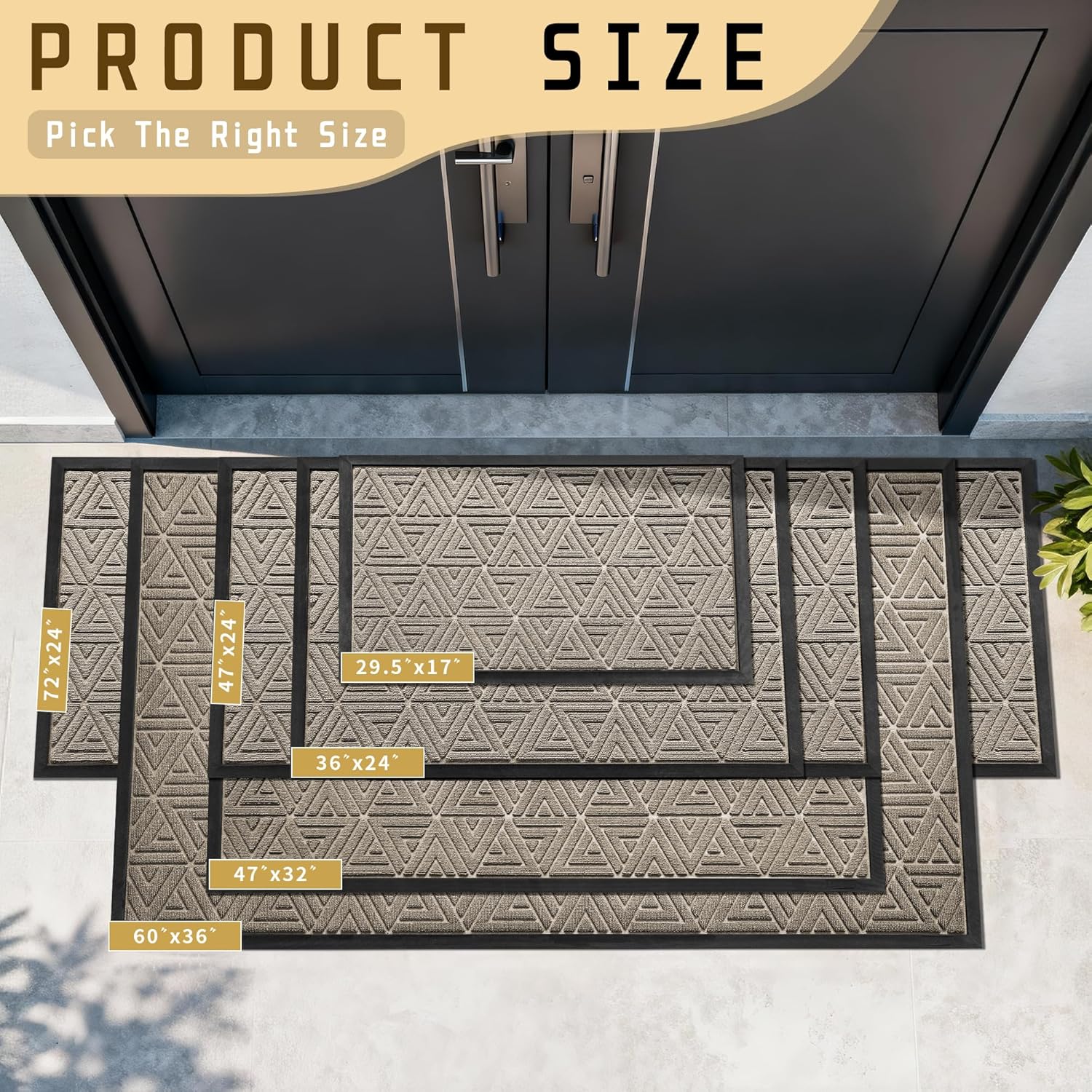 Yimobra Large Door Mat 36x24, All-Weather Waterproof Non-Slip Welcome Matt Outdoor, Heavy Duty Non Slip Doormat for Entryway for Patio and Garage Indoor, Easy Clean, Beige