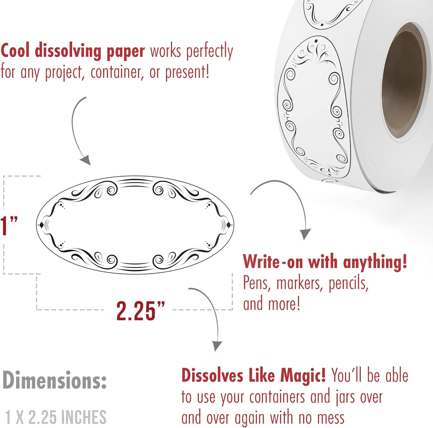 MESS Dissolvable Canning Labels for Jars - 1x2.25 in., 150/Roll - Removable Mason Jar Stickers (Ovals) for Jam and Preserves