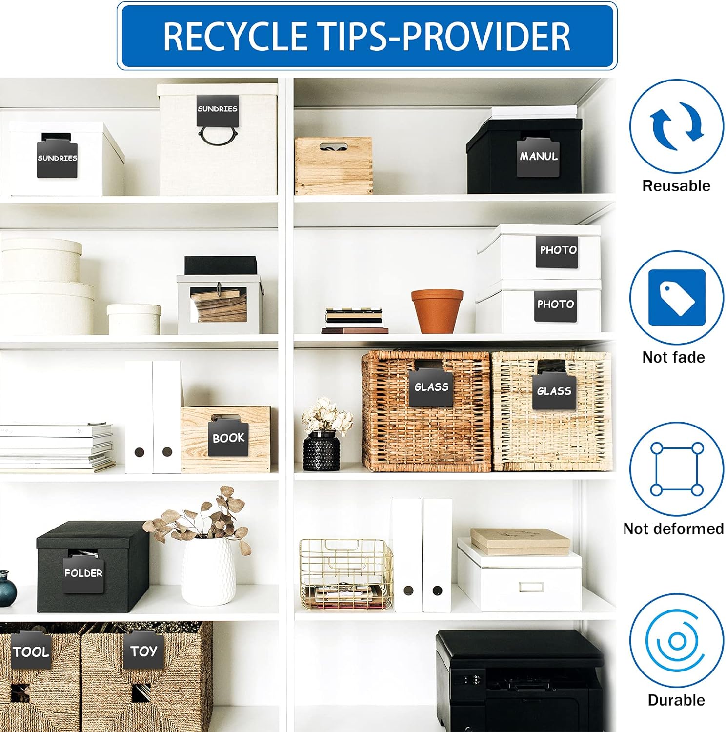 - Easy to mark: the package comes with 2 pieces chalk markers for your daily use, you can mark name on the label bins directly, just use the wet paper or water to clean it once you need change the marks name, convenience to use