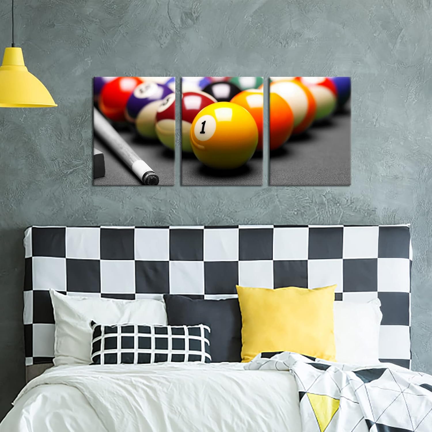 Apicoture Billiards Picture Canvas Wall Art Billiards Pool Hall Poster Pool Table Pictures Pool Room Wall Decor Ready to Hang 12"x16"x3 Pieces