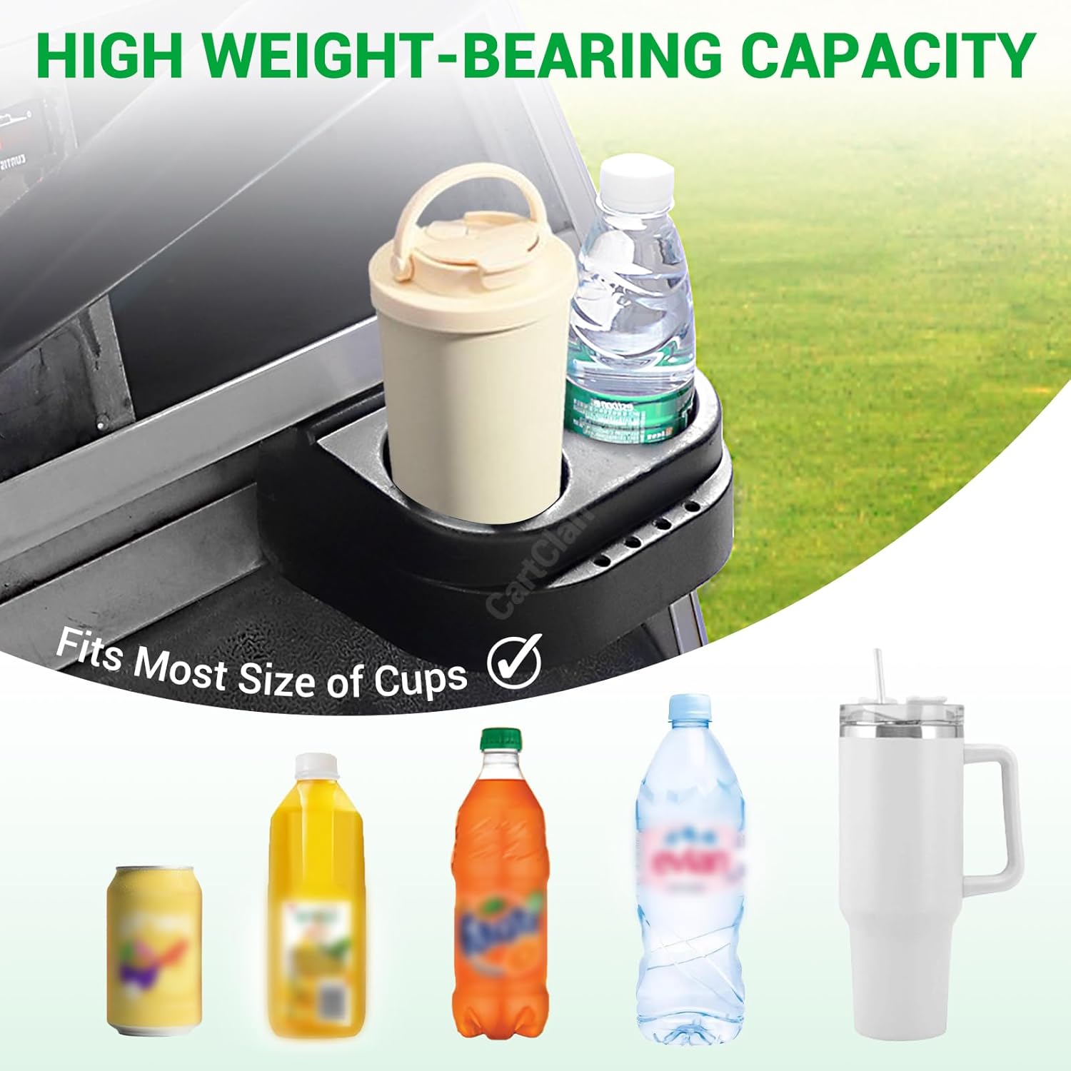 - ✔GREAT FUNCTION: Cartclan golf cart cup holder suitable for all styles of beverages water bottle. Keep your favorite refreshments close by with durable cup holders that can fit sized mugs and water bottles, phones, can, coffee and more in the compartments.