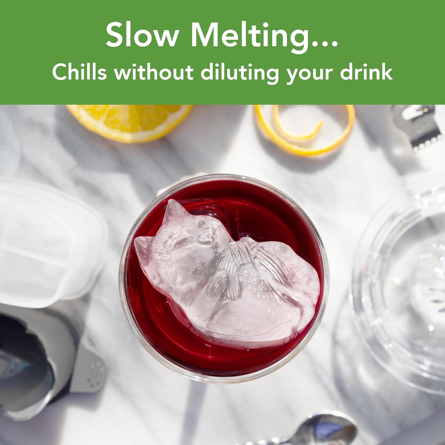 - SLOW MELTING ICE: Each cat ice cube mold produces substantial 2.9 by 4.75 inch ice pieces that melt slowly keeping drinks colder longer without diluting flavors too quickly making them ideal for cocktails and spirits
