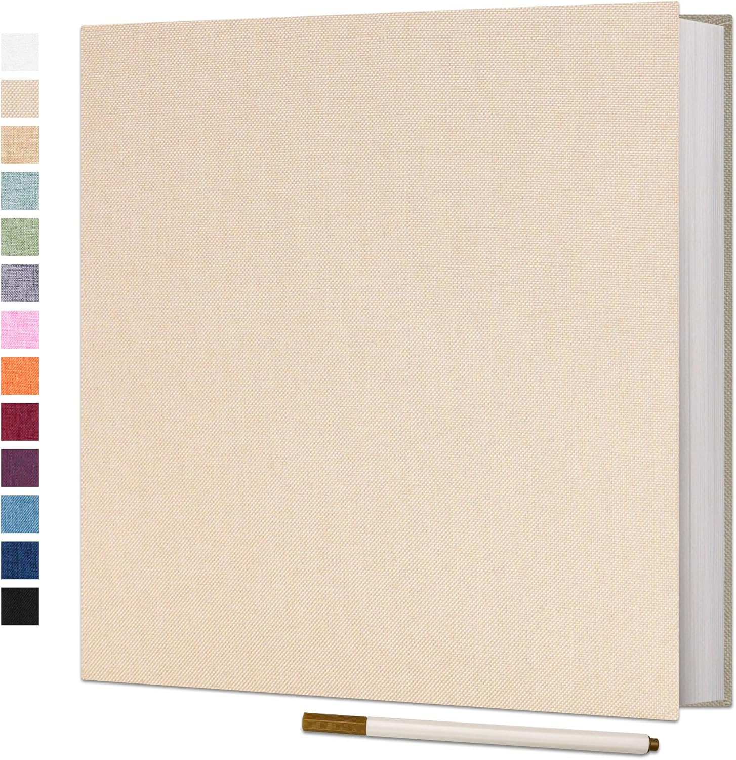 Vienrose Photo Album Self Adhesive 4x6 5x7 3x5 8x10 Scrapbook Album DIY Scrap Book with A Metallic Pen (11"x10.6" 60 Pages, Beige)