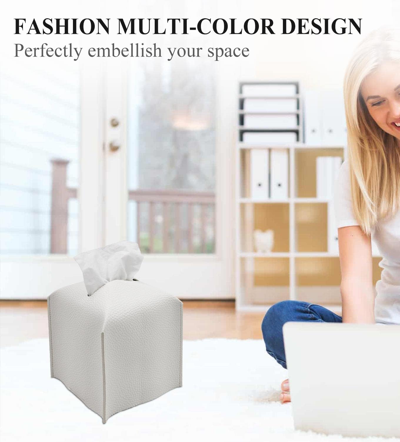 - CONCISE & REFINDED - Tissue box cover cube is made of durable premium PU leather. The stylish decoration tissue case box holder organizer has concise and refined, excellent workmanship. The clean, concise and modern design is perfect for home decor and office use; this is the missing piece in your room design that will complement any interior decor. It is the perfect choice for concealing your tissue boxes.