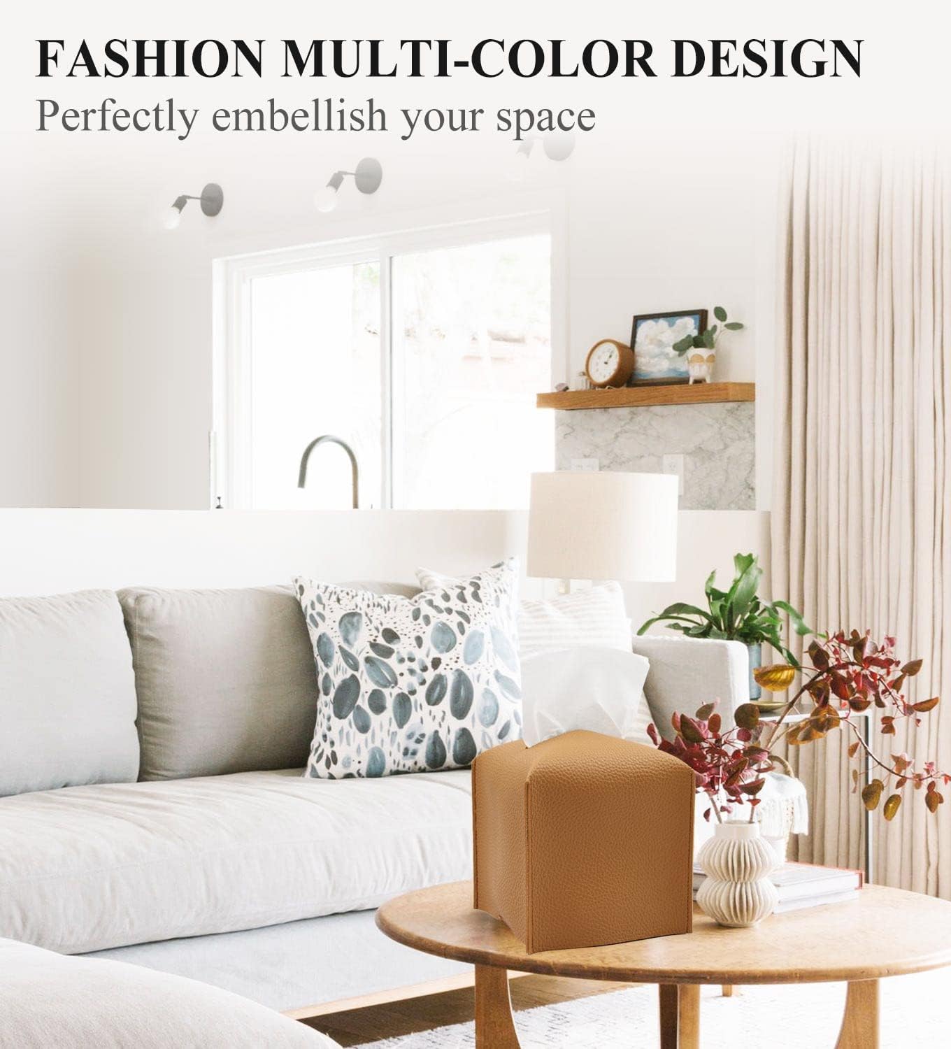 - IDEAL SIZE: Measuring 5.0 X 5.0 X 5.0 inches in size, the leather tissue box cover features a square shape, compatible with all popular square tissue boxes, and can be conveniently placed in any room in your house or office.