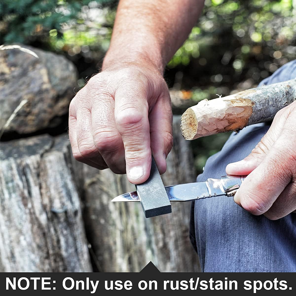 - Oversize Rust Eraser: The rust eraser measures 3 × 1 × 0.5 In. This is a fantastic tool for cleaning up surface rust and residue build-up on knife blades or metal utensils. This large rust remover is very durable and will last a long time.