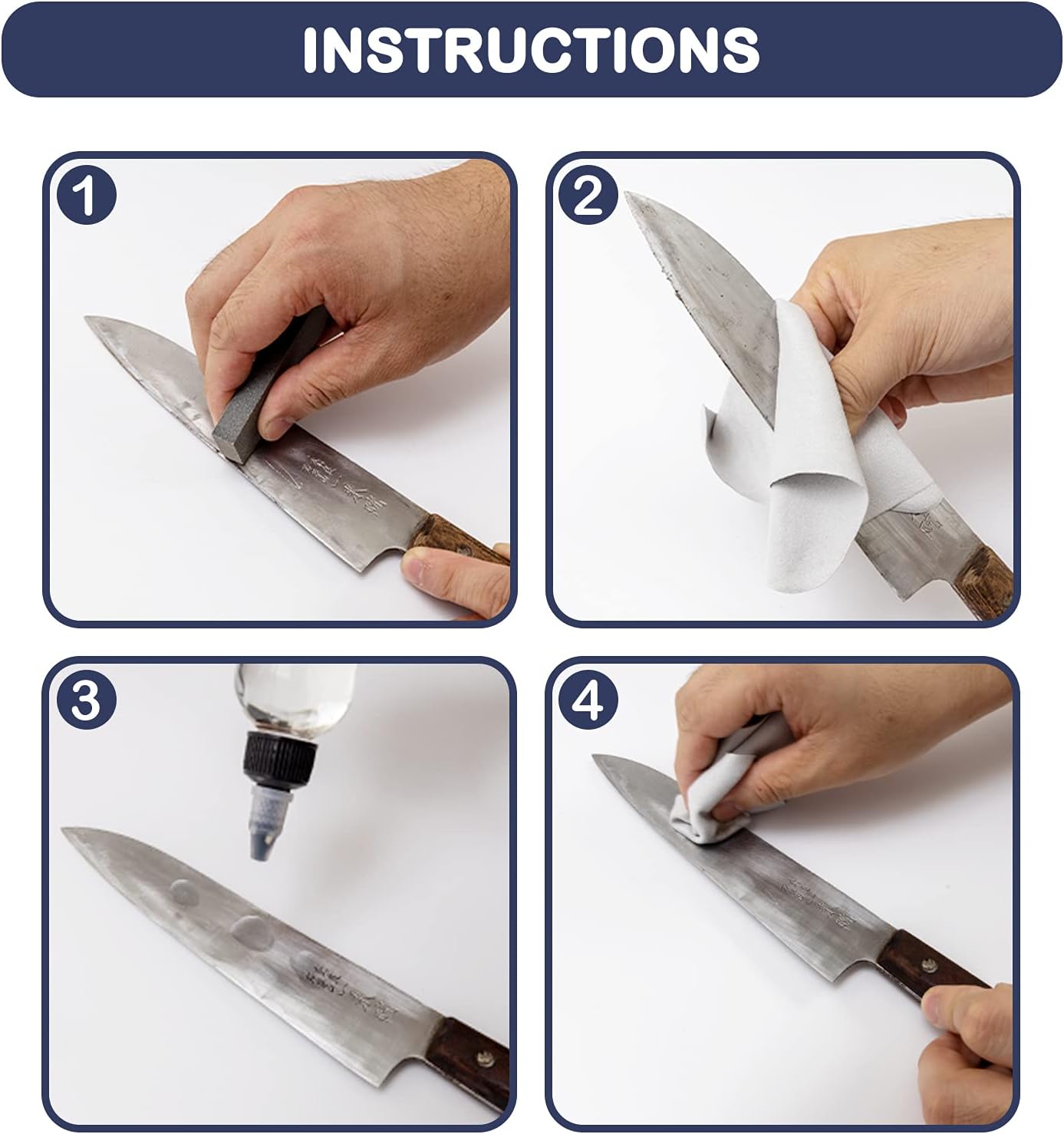 - A Perfect Maintenance Kit: Our kit includes knife oil, a rust eraser for knives, and a lint-free cloth. If your knives get rusty, you don't need to buy a separate eraser. We have a perfect kit for you to protect your knives.