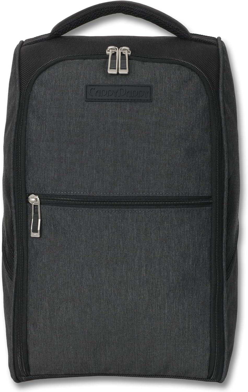 - STYLISH, PREMIUM GOLF SHOE BAG: The CaddyDaddy golf shoe bags allow you to carry your shoes together at all times. Made with high quality, ultra durable 1800D fabric, the shoe bag features a horse-shoe opening in the front and will last for years to come. Measures 15" x 10" x 6"