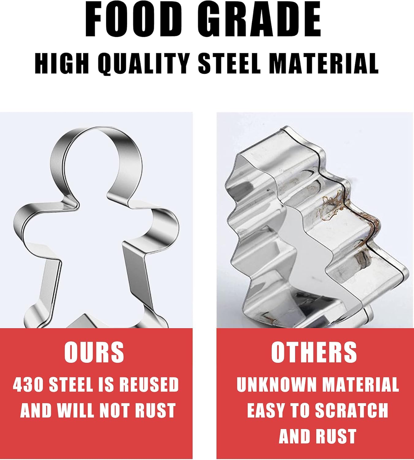 - š[High Quality] These Christmas cookie cutters are constructed of sturdy stainless steel, safe and stable for long-lasting use. The edge of the cut edge is smooth, the other side is folded, that is kind to your hands, you can use it with confidence.Easy to clean with hot water and soap, dry before storing. Hand wash only.