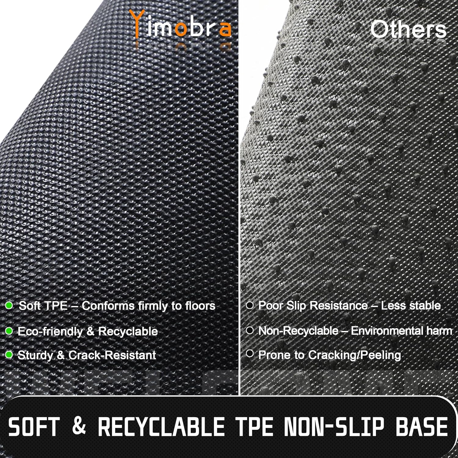 - 【Perfect Dirt Trapper】: Yimobra welcome mat surface is made of high-quality artificial grass, compared to other common materials, this can be more effective in trapping dirt, dust, mud, sand, or other debris and preventing them from entering the room, thus keeping your home clean and tidy. The Sturdy rubberized beveled edges also trap water, preventing excess water from splashing onto the floor!
