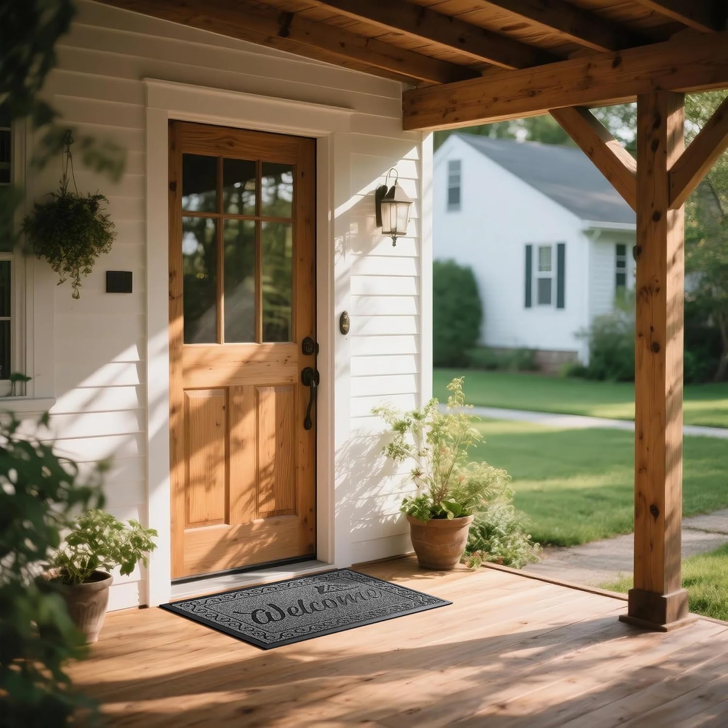 - 【Non-Slip Rubber Backing】: The back of the doormat is made of natural rubber, which has less odor, more tensile strength, and higher tear resistance, this heavy-duty doormat fits perfectly on the floor and helps to prevent slipping when entering and exiting, ensuring your family's safety