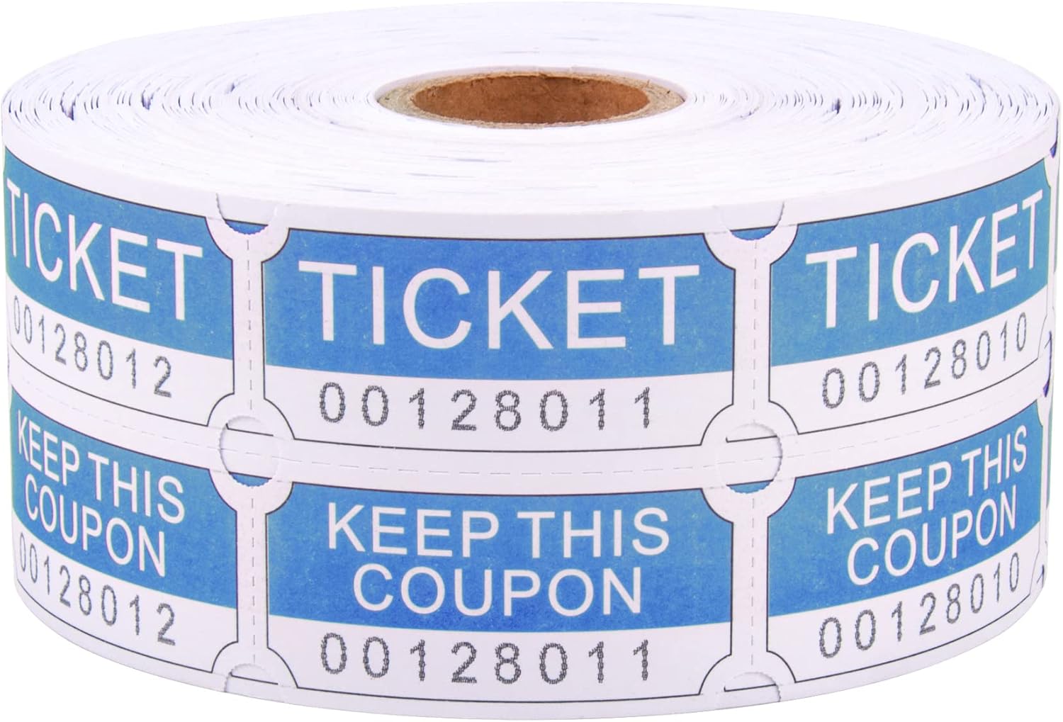 ESSENTIAL 1000 Blue Double RaffleTickets Roll, Raffle Tickets Printable for Leisure, Movie Watching, Entertainment