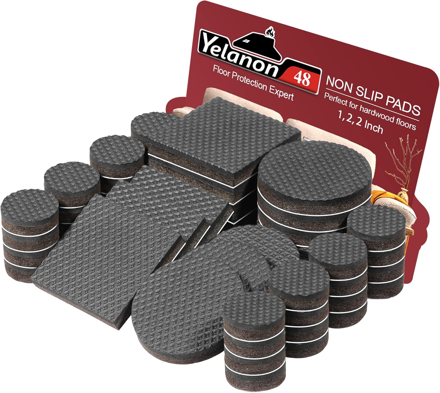 - EXTRA-STRONG ADHESIVE - We professionally designed and produce self-stick rubber pads for chair legs and other furniture. Yelanon anti scratch furniture pads made of high-density felt that keeps the non skid furniture pads in place firmly and last longer.