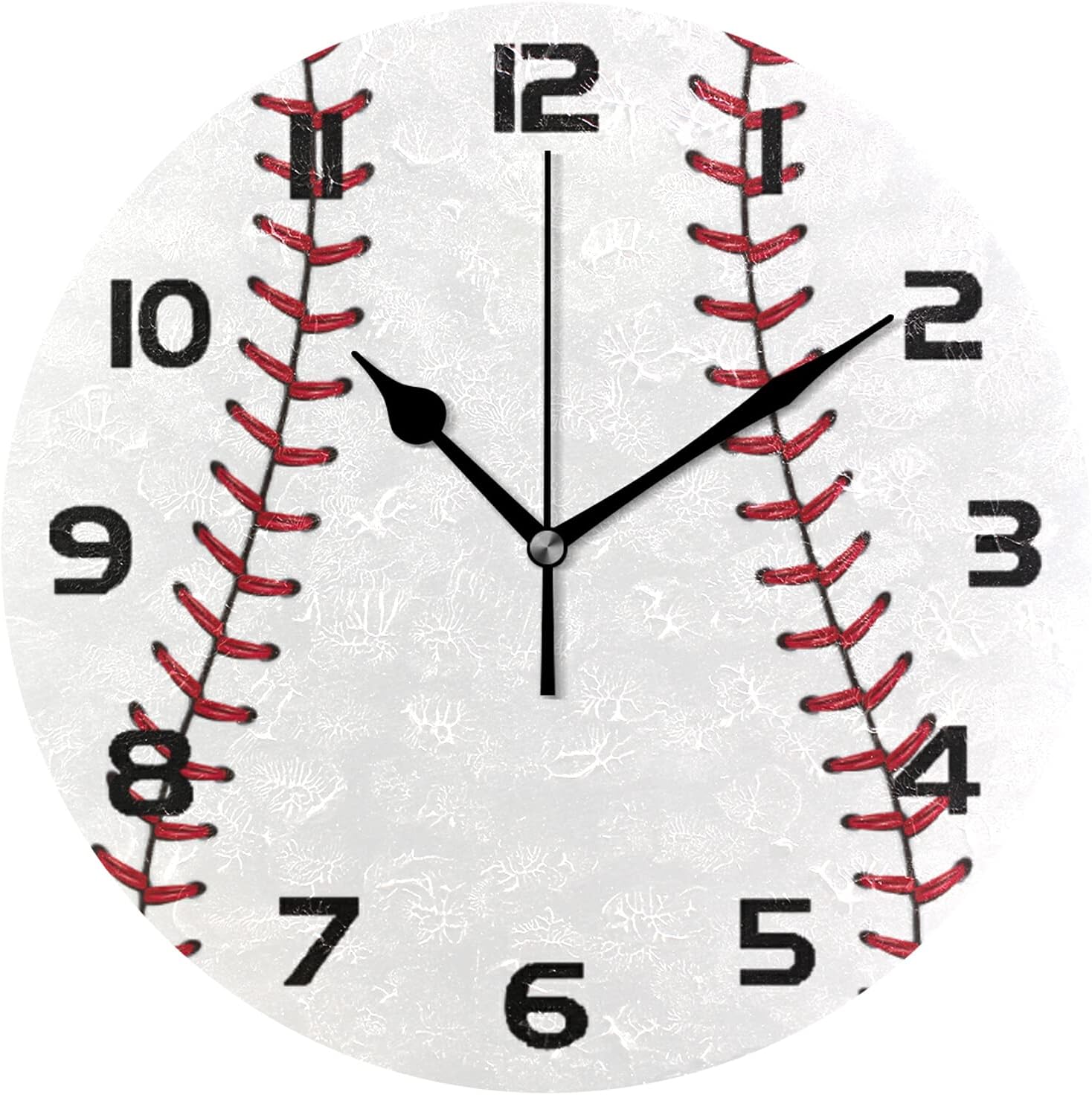 Sports Baseball Print Wall Clock Silent Non-Ticking,Baseball 9.5 Inch Round Wall Clock Battery Operated Clock Decor for Boys Room Home Wall Bathroom Kitchen Bedroom Living Room Office Classroom Patio