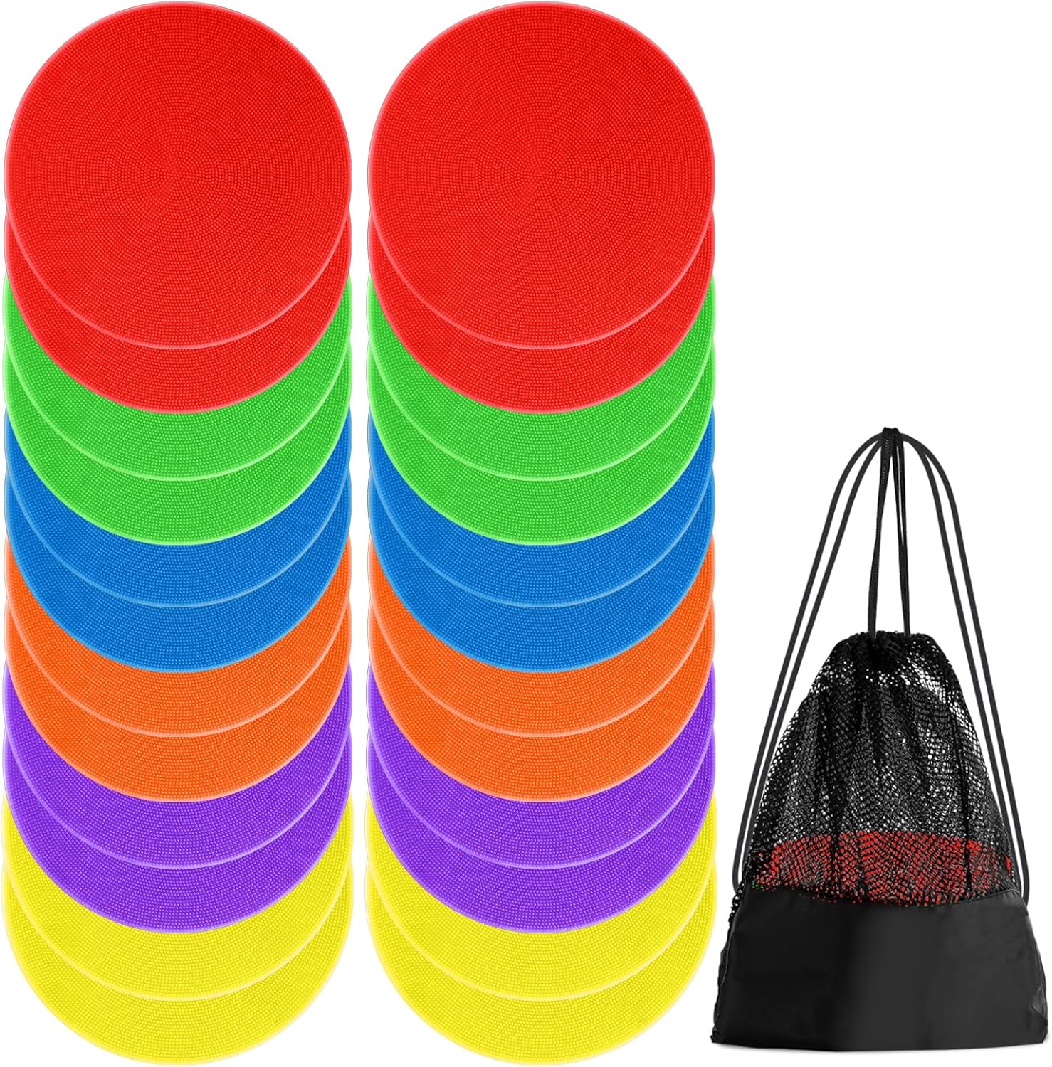 - 【A SET OF 24 POLY SPOT MARKERS】You will receive 24 pieces of floor spot markers and a drawstring bag for easy placement and carrying. Size: 9inch/23cm diameter, 0.1inch/2.5mm thickness. 6 different colors, each color four piece