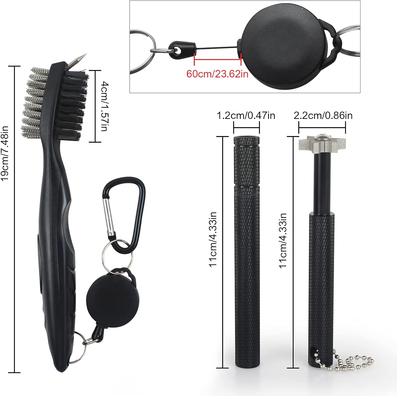 - Included Components : Golf Club Groove Flat Sharpener, Golf Club Groove Hexagonal Sharpener, Retractable Golf Club Brush