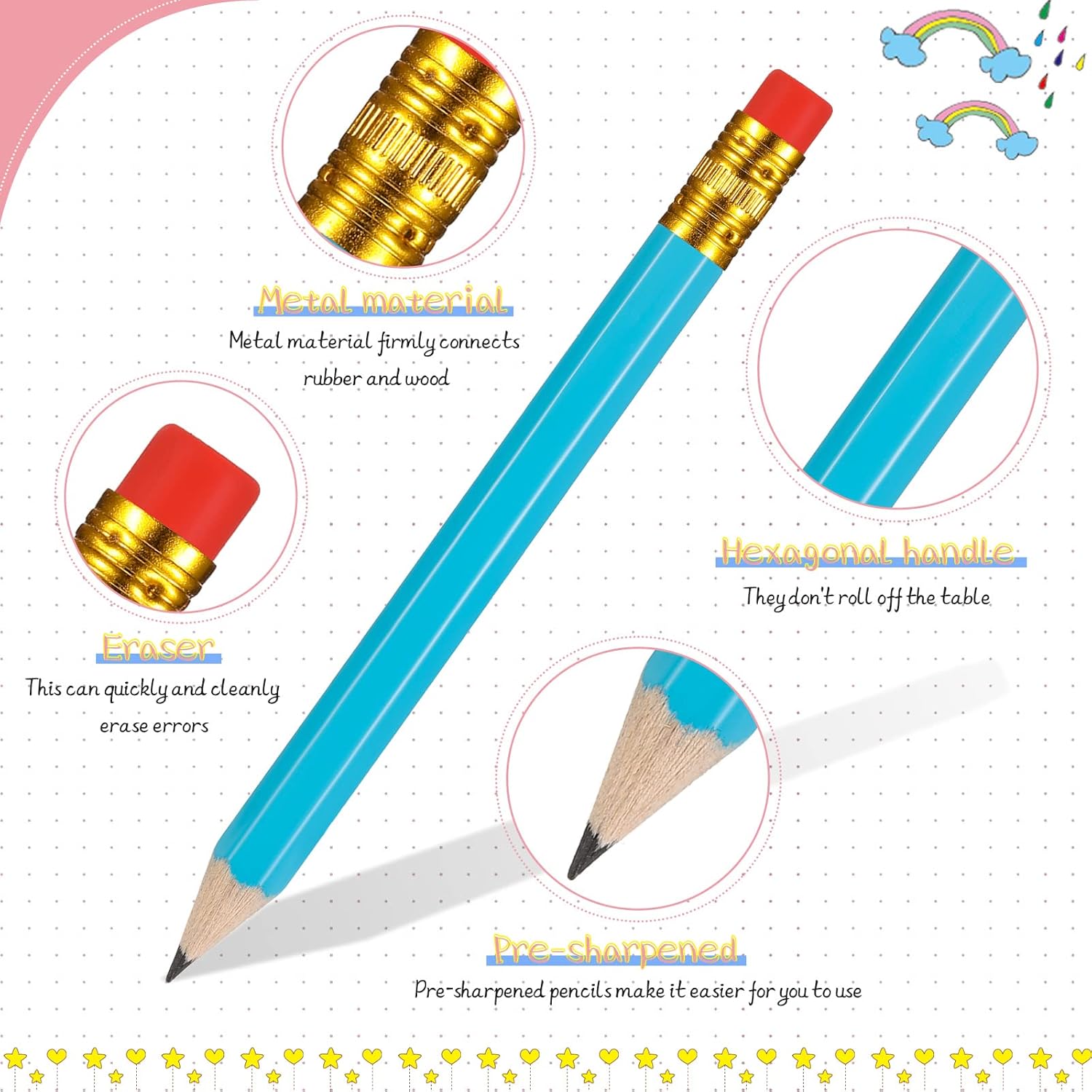 Zonon 48 Pieces Golf Pencils Mini Half Pencils with Eraser Short with Erasers Bulk Small for Kids HB Wedding Bridal School Office Writing Drawing Pocket(Light Blue)
