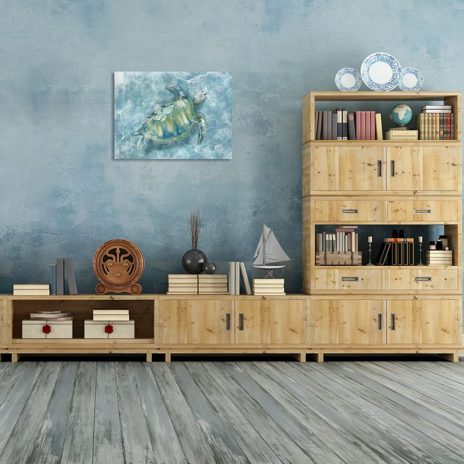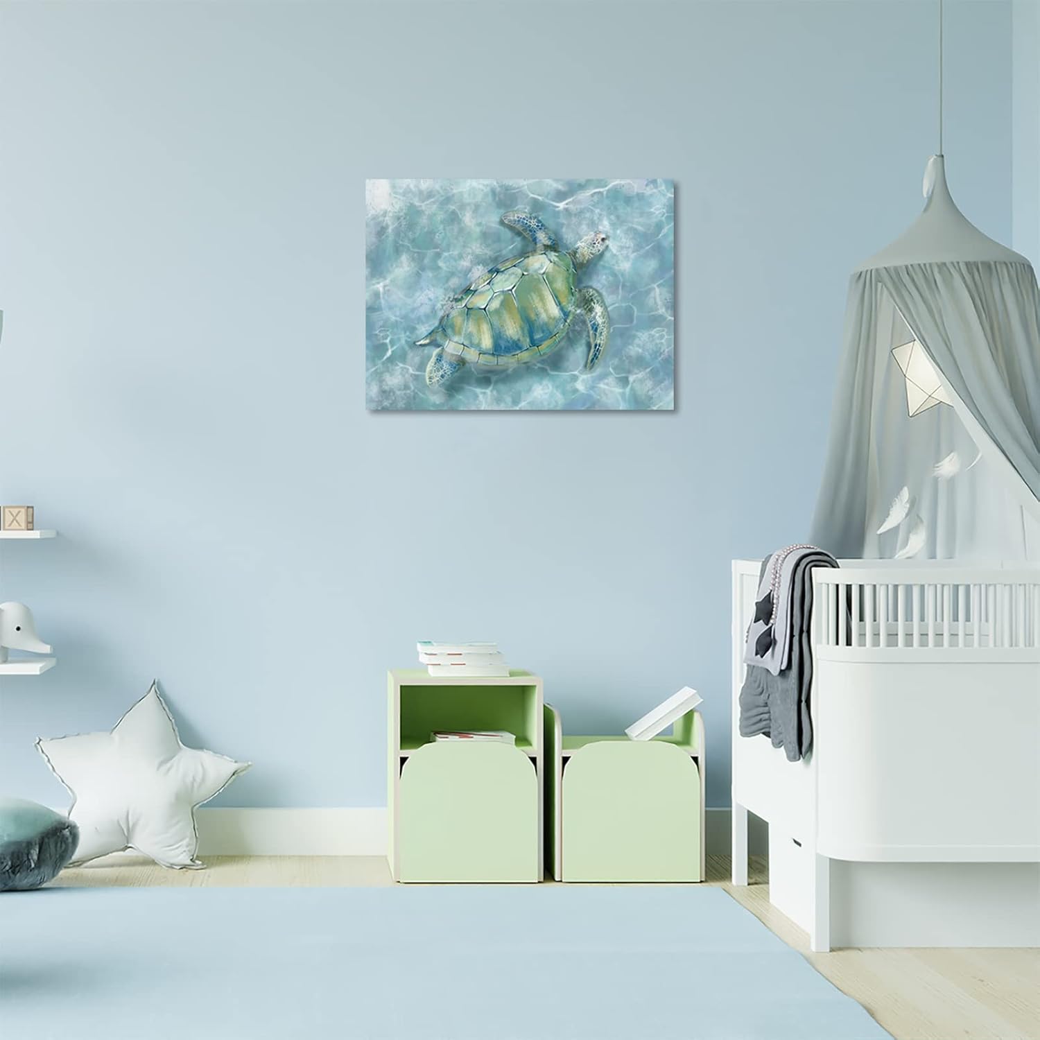 YJYart Canvas Wall Art for Bedroom Sea Turtle Wall Decor Pictures for Wall Blue Artwork Pictures Green Turtle Wall Decorations for Bathroom Bedroom Home Office 24 x 36 inches