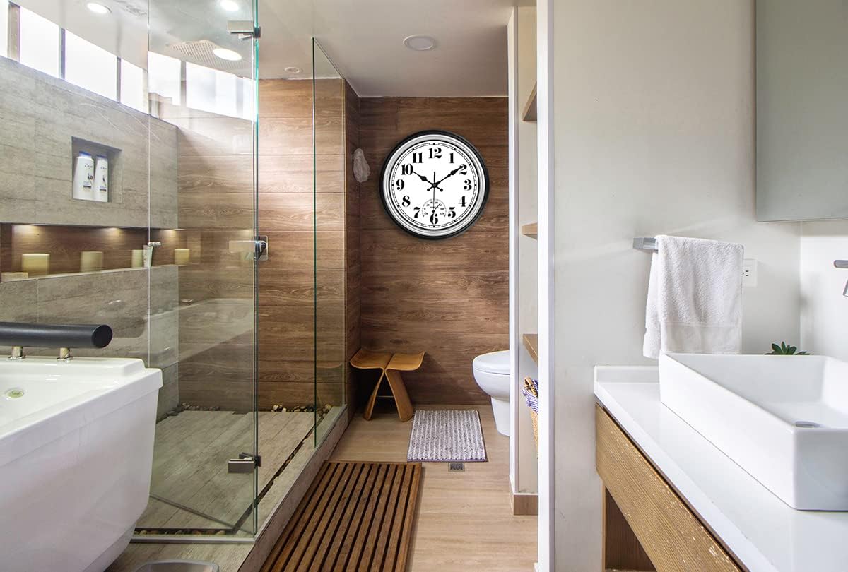 - ăWaterproof & Temperatureă You will love this outdoor wall clock with thermometer. It is waterproof and can be placed porch,patio,bathroom etc without worrying about get wet. If you are on the terrace, you can easily know the current time and temperature without going back to the house or looking at your phone.