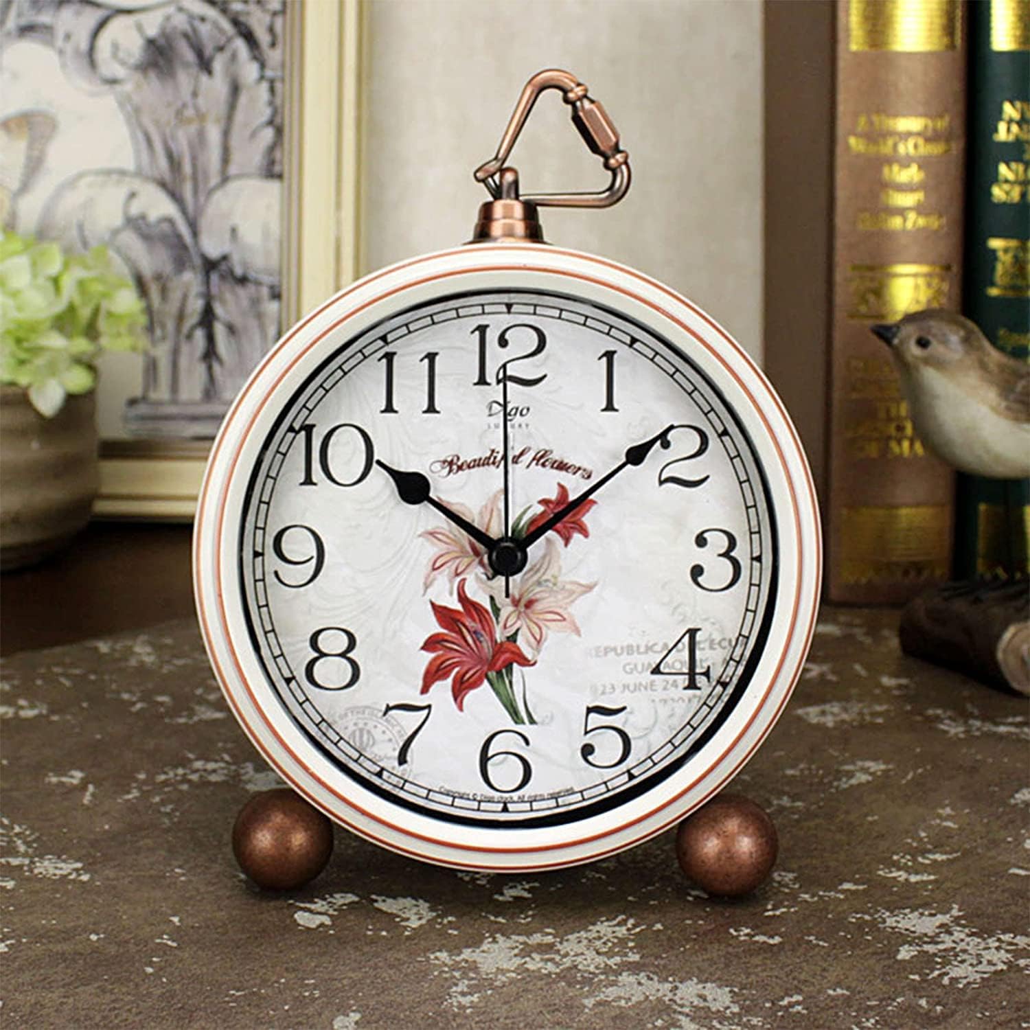 - Vintage Clock: Retro classic romantic lily design european style desk clock, bring home furnishing high-end elegant atmosphere. Antique look, luxury simple but elegant, tracing every moment for you.