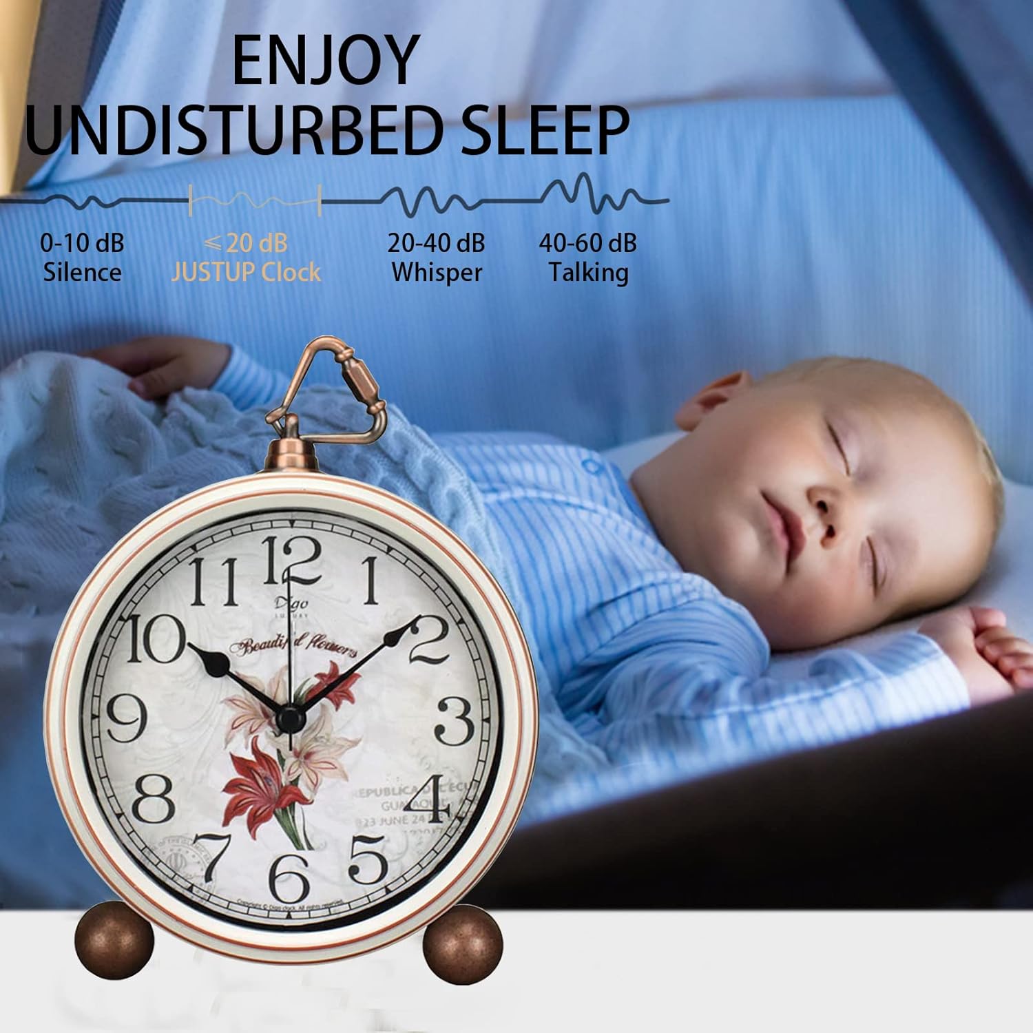 - Super Quiet Movement: One great clock, when you sleep, it’s quiet working ,and when you wanna wake up, it’s loud and wake you up quickly. Just like our clock, with the superior quality movement, you will not bother by any kind of noise.