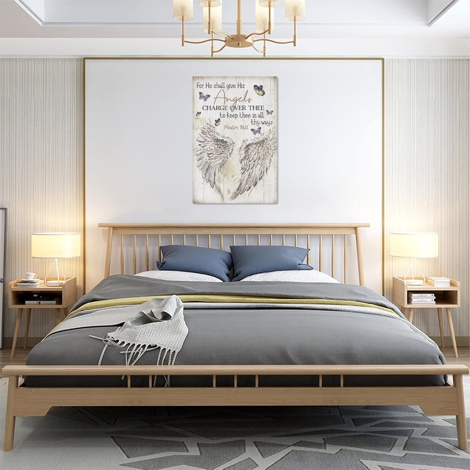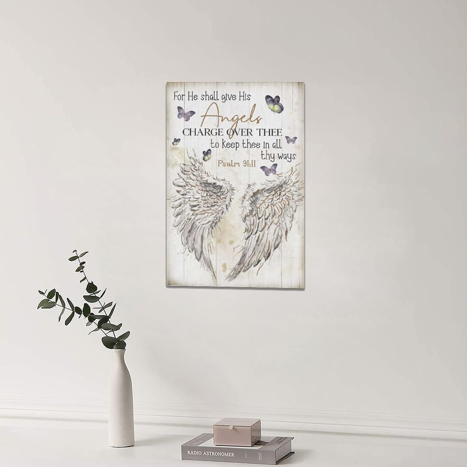 Scripture Psalm 91 Wall Art Christian Angel Wings Pictures Wall Decor Bible Verse Canvas Painting Print Artwork Abstract Modern Home Decorations Framed Ready to Hang for Office Living Room 16"x24"