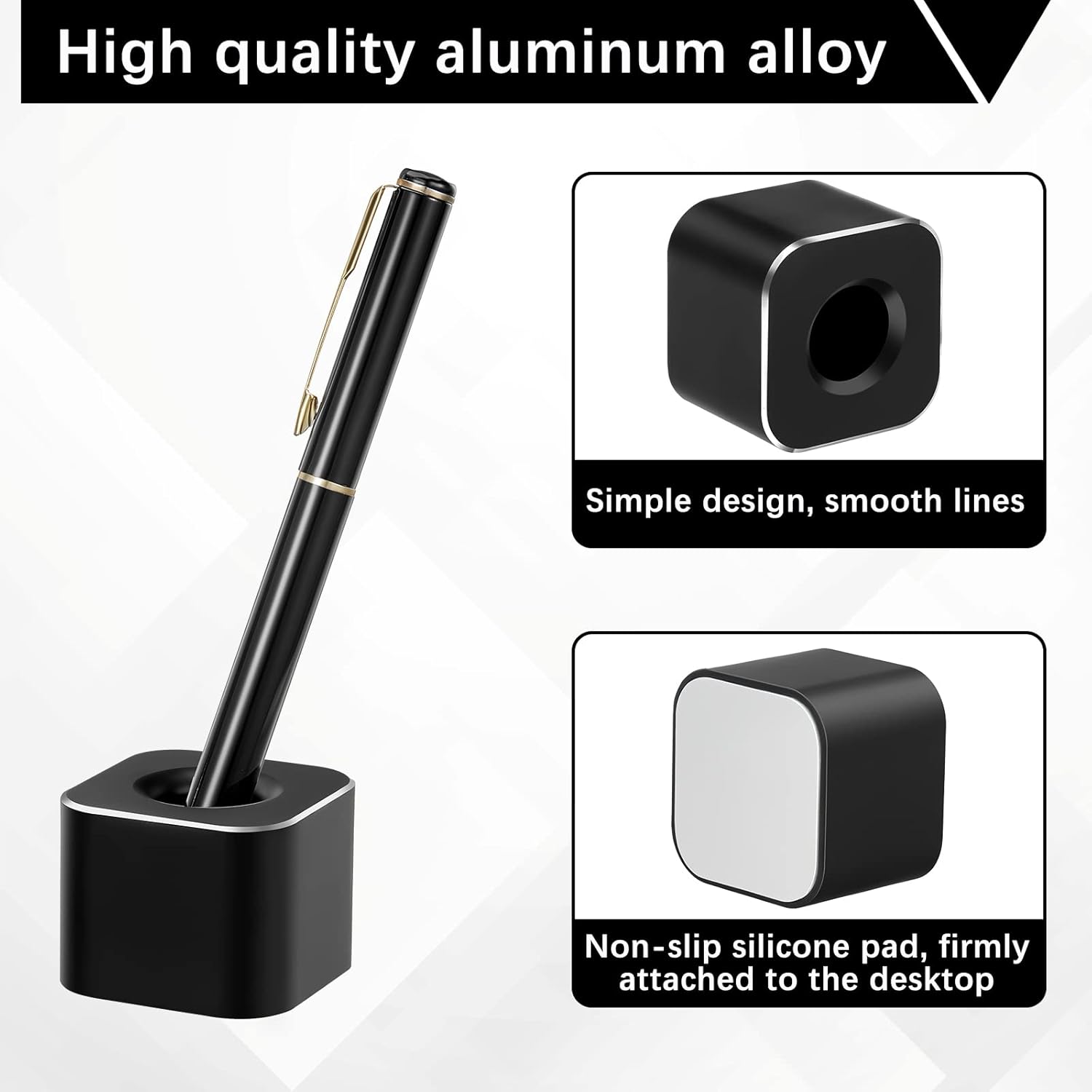 Chinco 2 Pieces Single Pen Holder Metal Pen Stand Square Base Aluminum Student Desk Organizer for Desk Desktop Toothbrush Stand Holder Display for Home Office Students Teachers