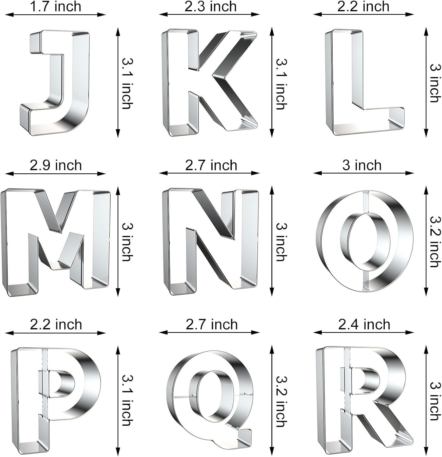 Alphabet Letter Cookie Cutters Shapes Large 3 Inch - 26 Pcs Stainless Steel Cookie Cutter Set Fondant Biscuit Fruit Dough Mold Tools for Birthday, Christmas, New Year and Holiday Party Decorations