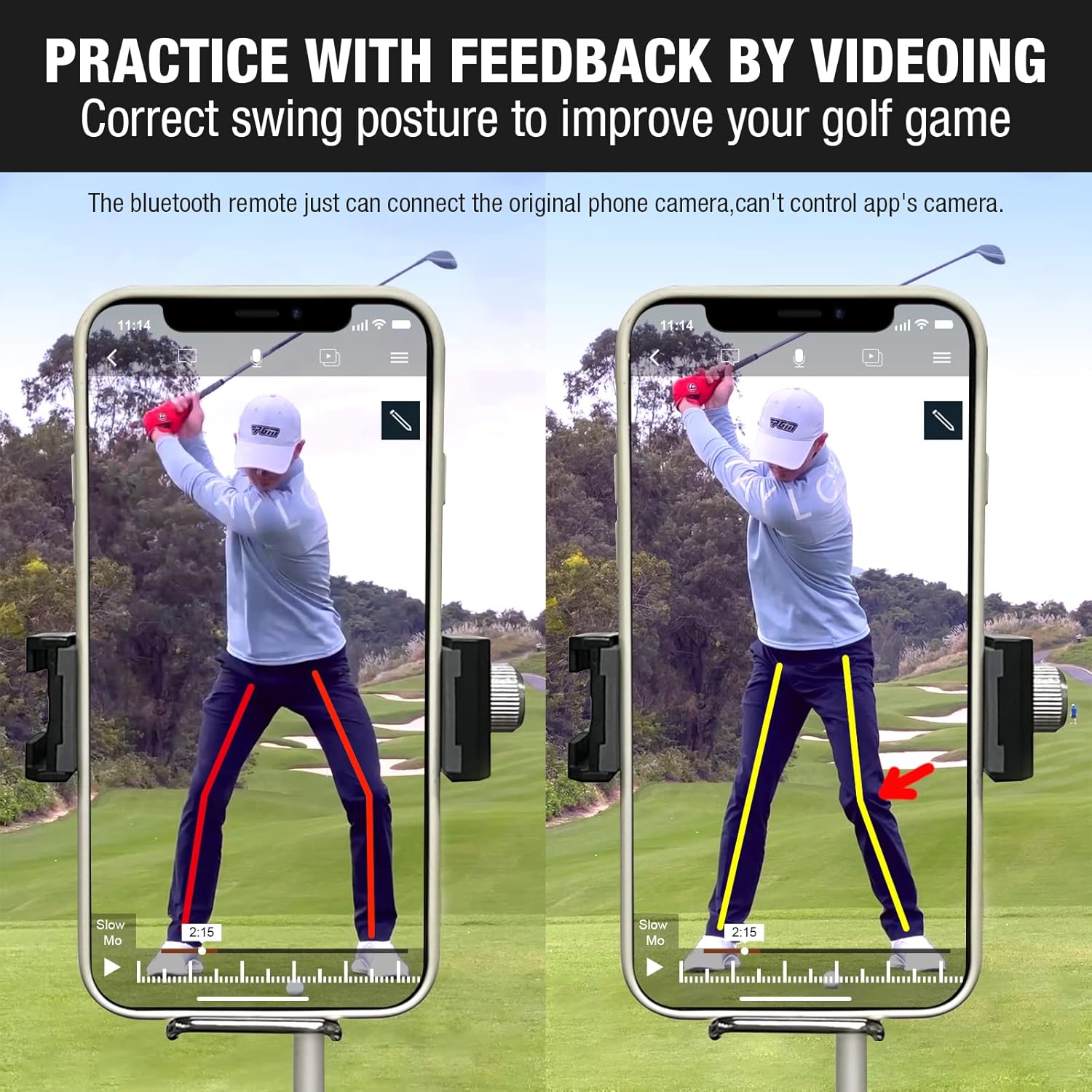 - ăREMOTE SELFIE GOLF PHONE HOLDER FOR GOLF TRAINING AIDăGolf cart cell phone holder with bluetooth remote to connect cellphone,which record videos/pictures by yourself without click cellphone,more convenient and quickly to record golf swing,analyzing and adjusting your swing posture to improve your body movements,widely used in golf course,driving range and golf green,Dprofy golf cart phone holder endures all ground surfaces and windy weather through tested