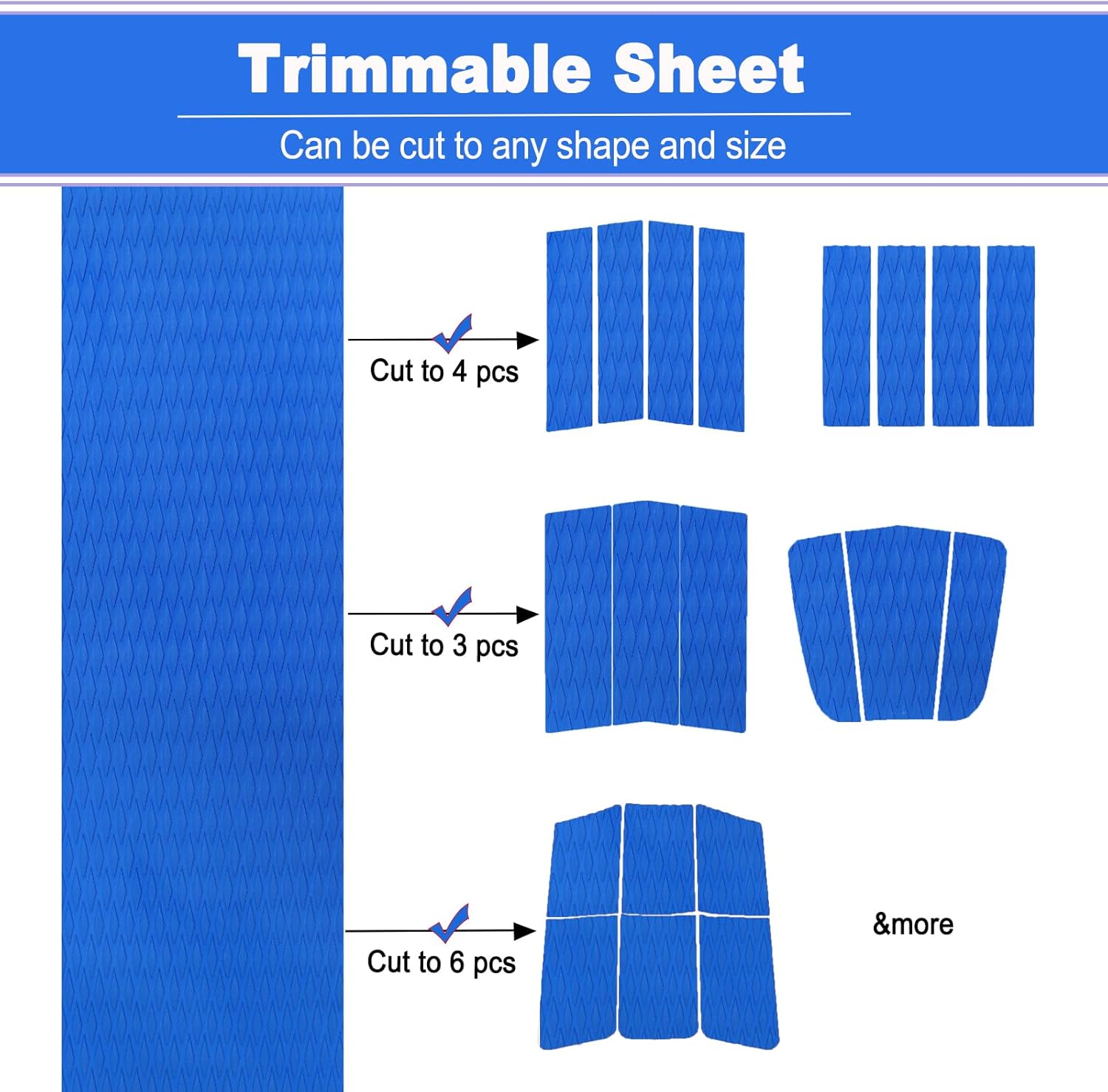- Trimmable EVA Pad - EVA foam boat decking sheet, can be trimmable, you can DIY to any size/shape to fit your surfboard and decking. Also have 6 kinds of color you can choose, making your surfboard special and charming. DIY SURFING TRACTION PAD