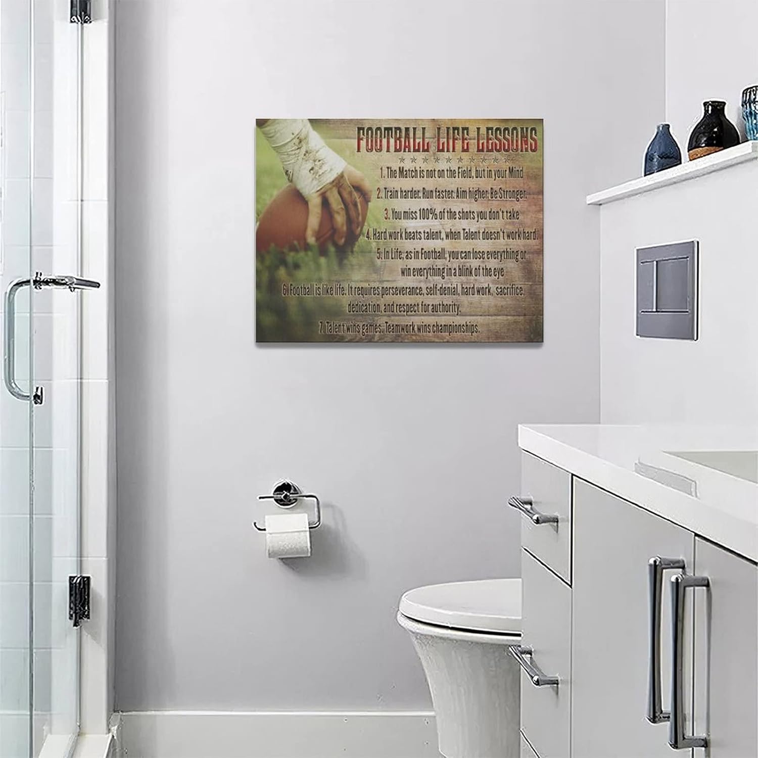 Football Life Lessons Wall Art Pictures Wall Decor Gifts for Football Player Boy Man Football Fan Vintage Football Sports Canvas Painting Print Artwork Framed for Classroom Boy Room Gym Office 12"x16"