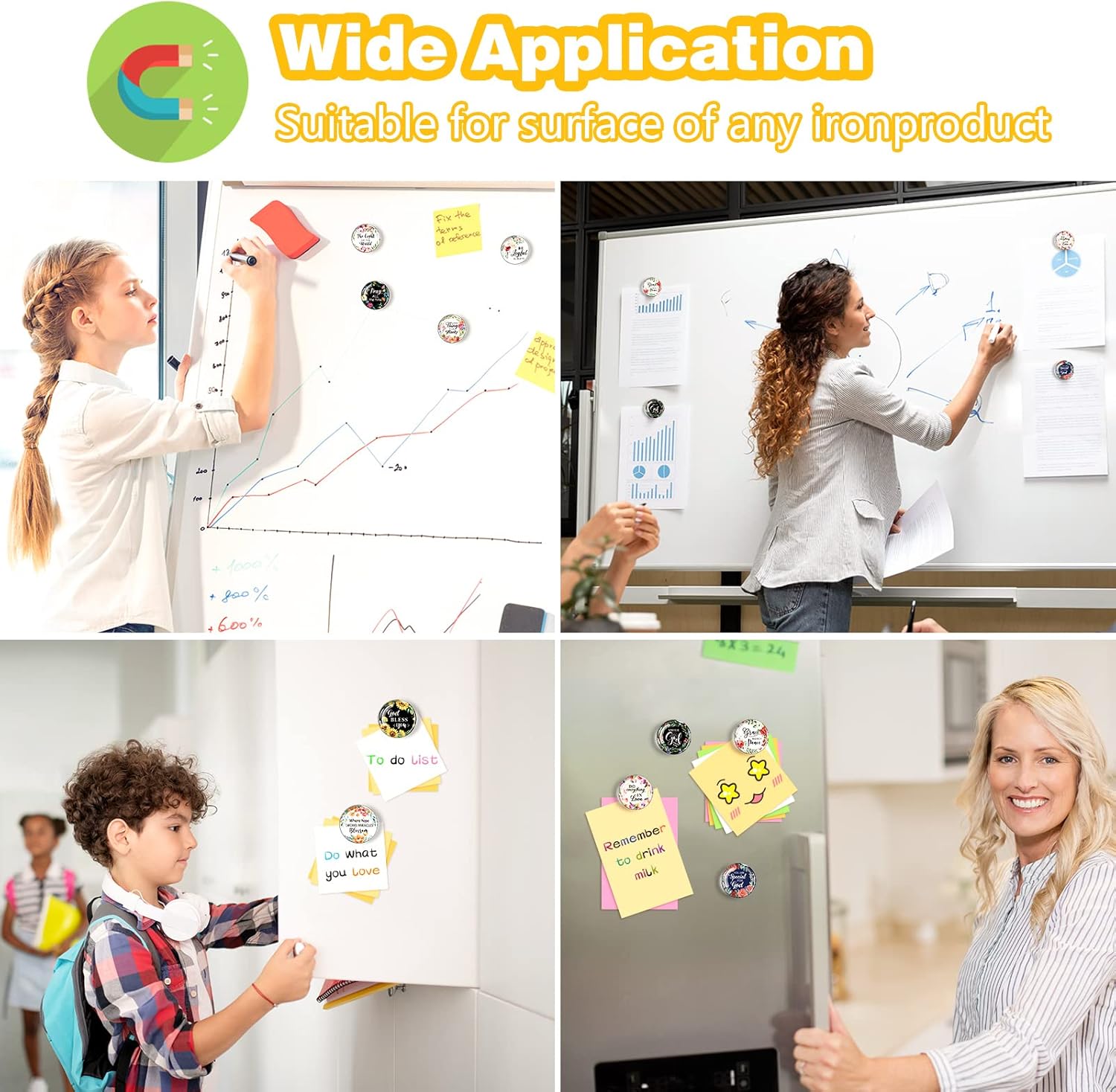 - Package includes: there are 10 pieces of inspirational locker magnets in various styles, designed 3.2cm/ 1.26 inch in diameter, these are decorative magnets with motivational quotes can be attached to metallic surfaces like fridges, lockers, boards, etc.