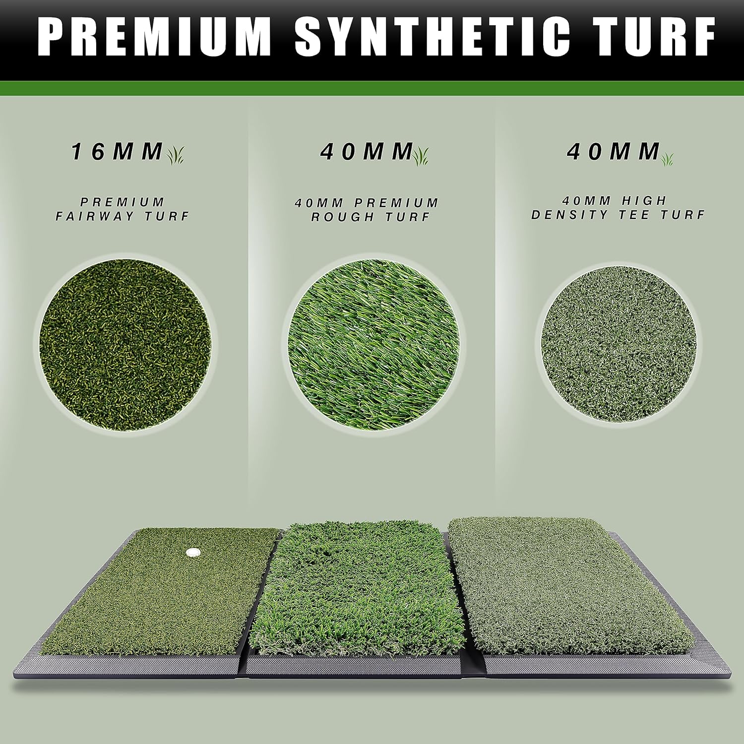 - Practice All Skill Levels : You can practice any shot with rough turf ,fairway turf & tee turf. Which lets you spare your lawn when practicing outdoors and gives authentic feeling turf when training indoors.