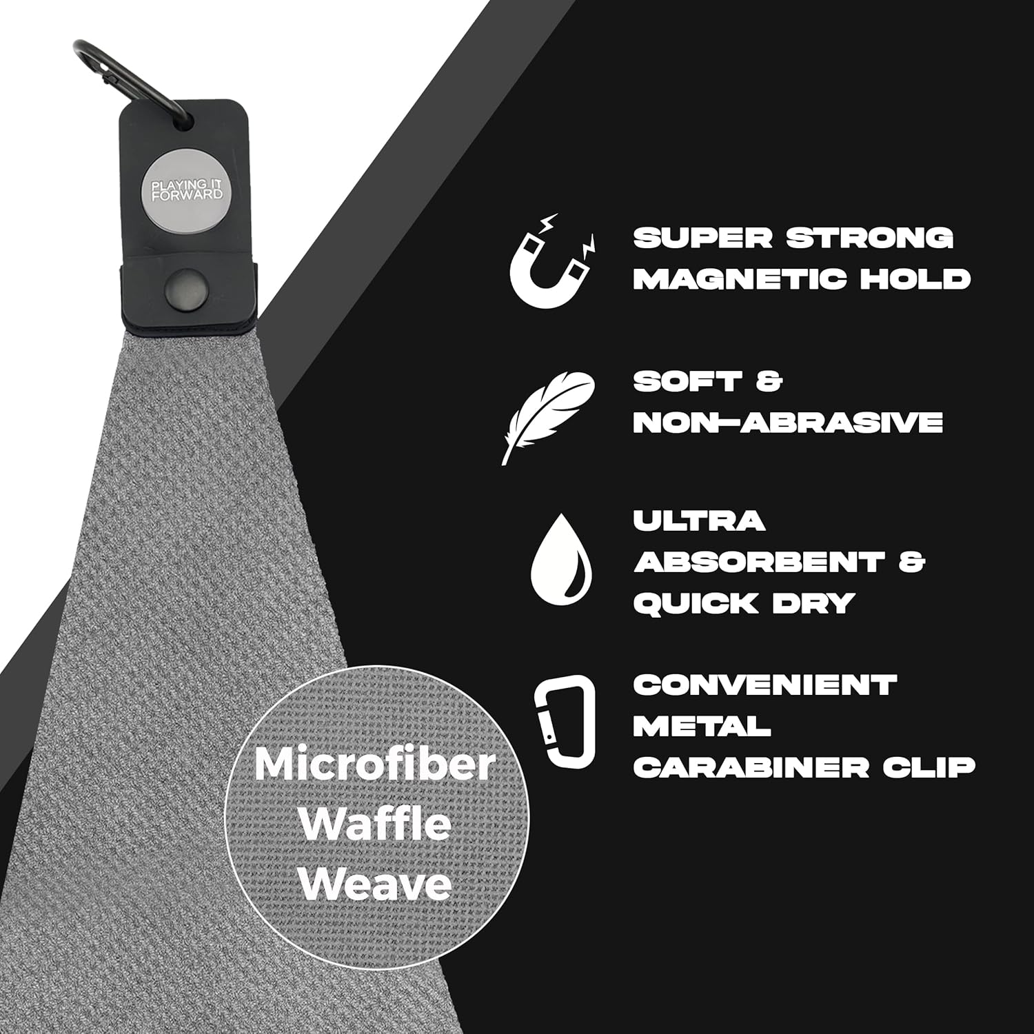 Magnetic Golf Towels for Golf Bags with Clip & Ultra Strong Magnet - Waffle Weave Microfiber Towel for Secure Hold on Bags & Carts - Ideal Club Cleaner & Accessories - Gray