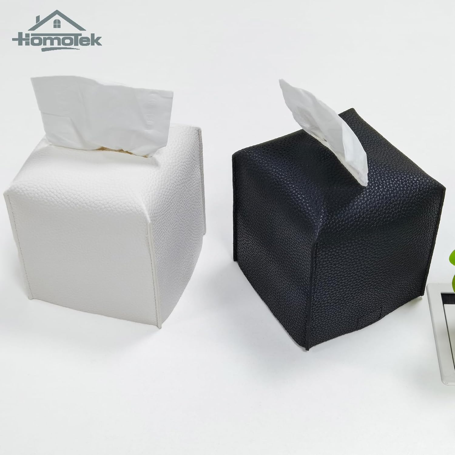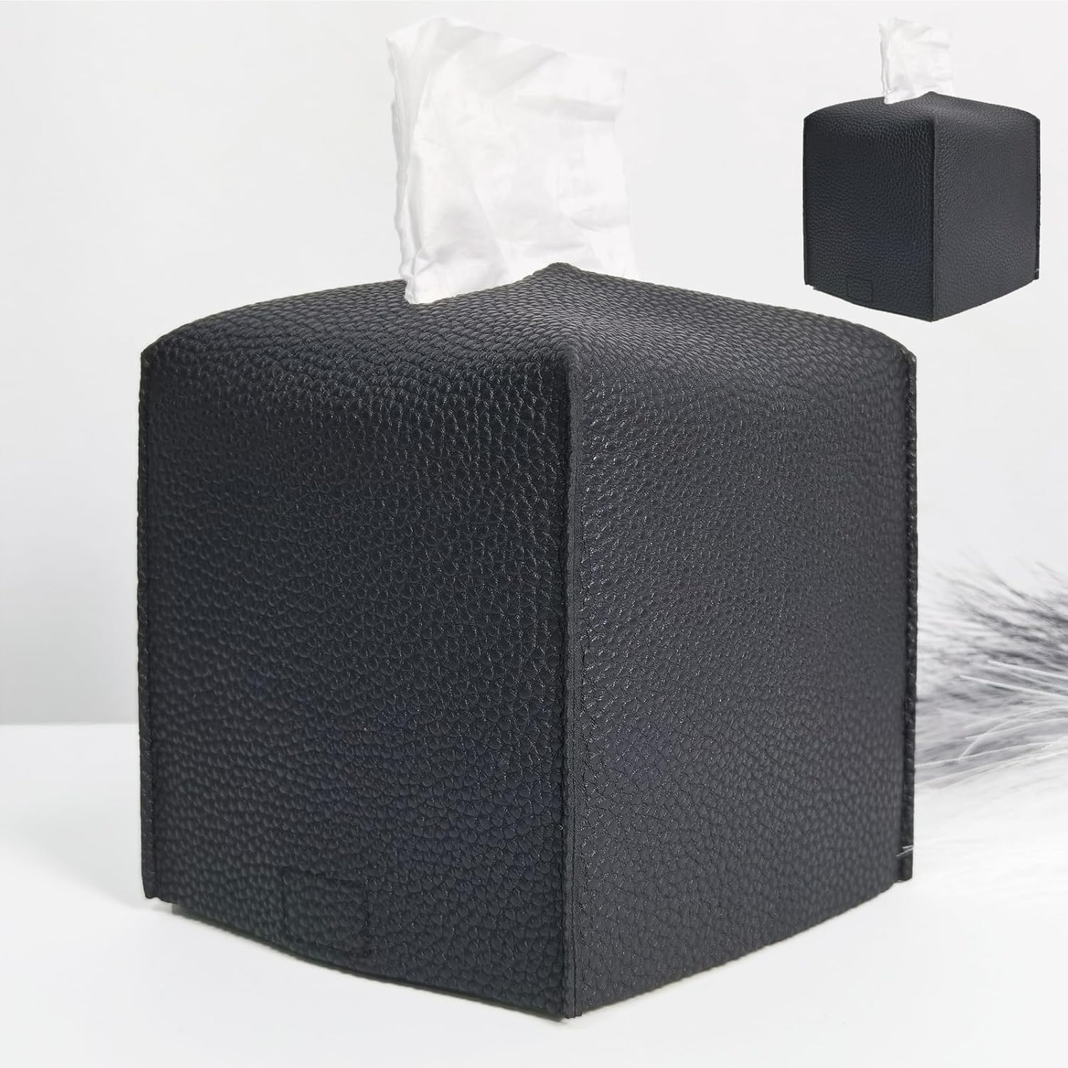 - Elegant Design:Elevate your decor with this stylish square tissue box cover; crafted from premium PU leather with chic textures like Litchi Grain and Woven Waffle; a perfect blend of sophistication and practicality