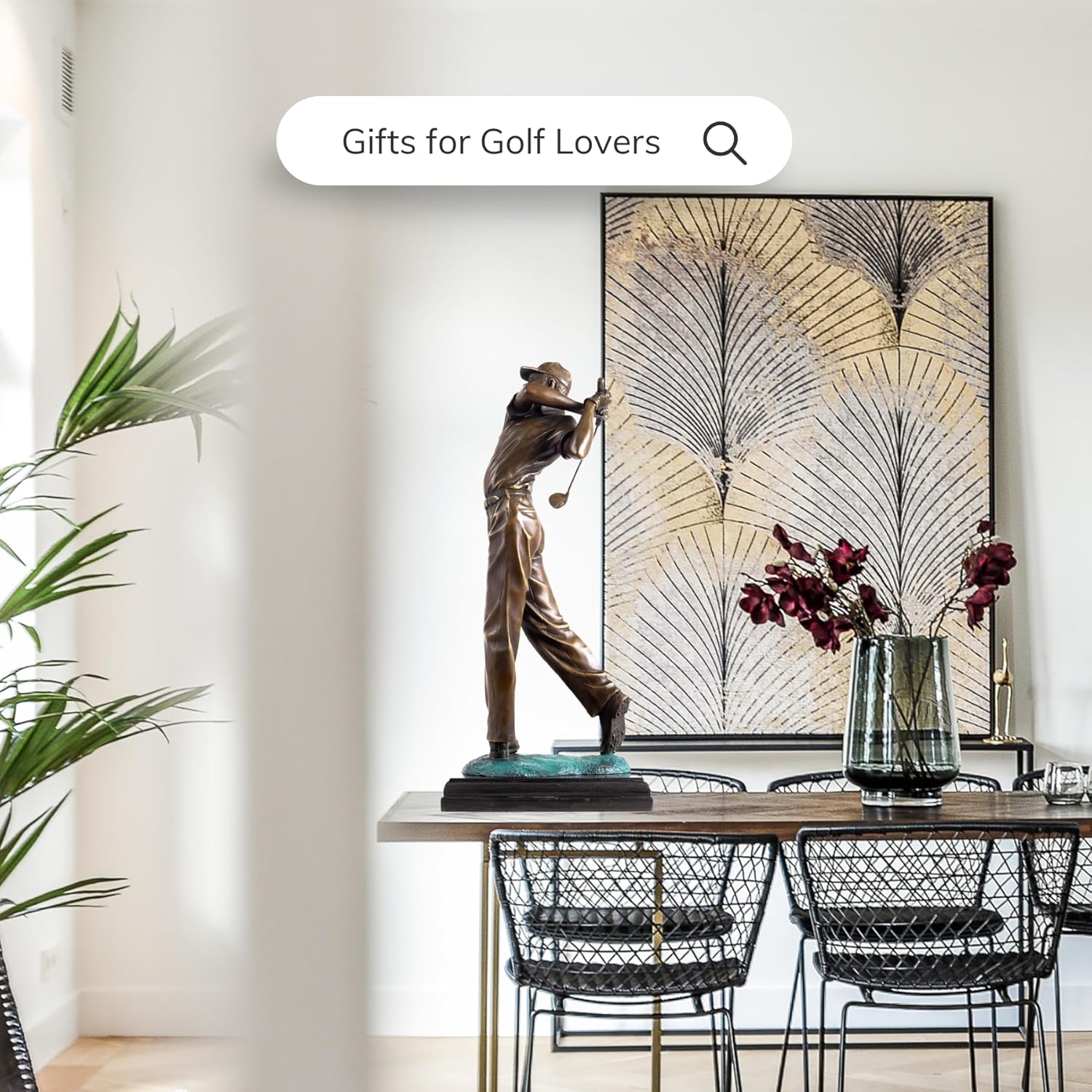 22.8'' Golf Man Bronze Statue, Classical Golfer Bronze Figurine Sculpture with Marble Base Modern Art Crafts for Home Office Decor Gift