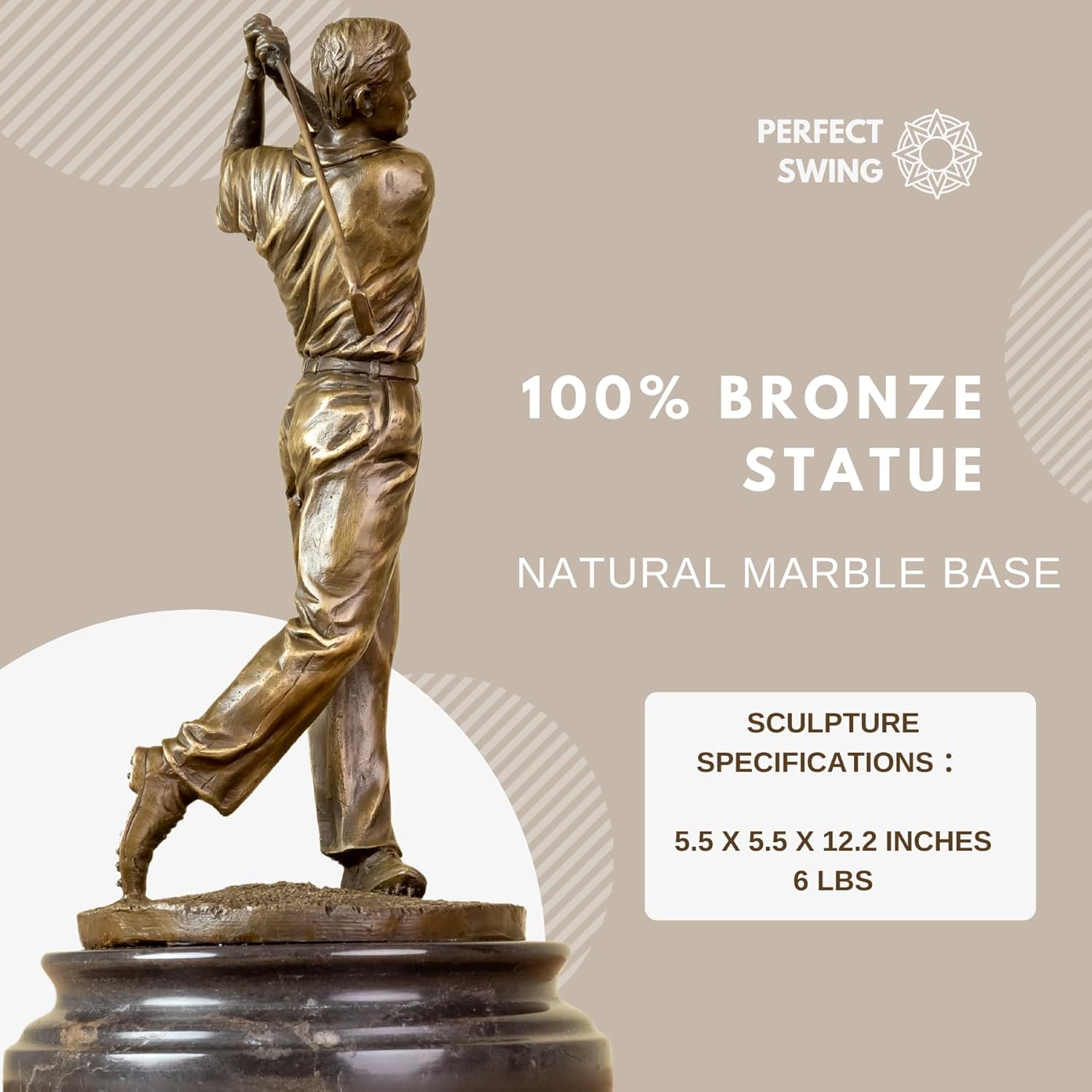- 【Premium Bronze Craftsmanship】Handcrafted from high-quality bronze with a polished finish, this sculpture highlights the athlete’s dynamic movement. The intricate details of the golf swing are captured beautifully, giving the piece a lifelike feel.
