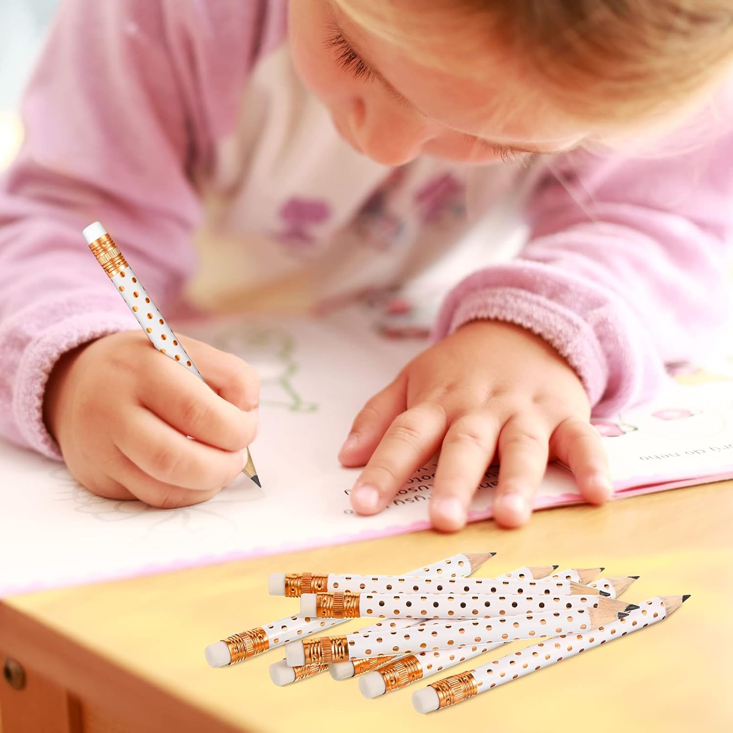 - Gold Foil Dots: the small short pencils are engraved with the sweetest gold foil dots, very suitable for parties, bridal shower, baby shower and other holidays; Your pencils will be pre sharpened and ready for you and your guests, and each pencil comes with eraser