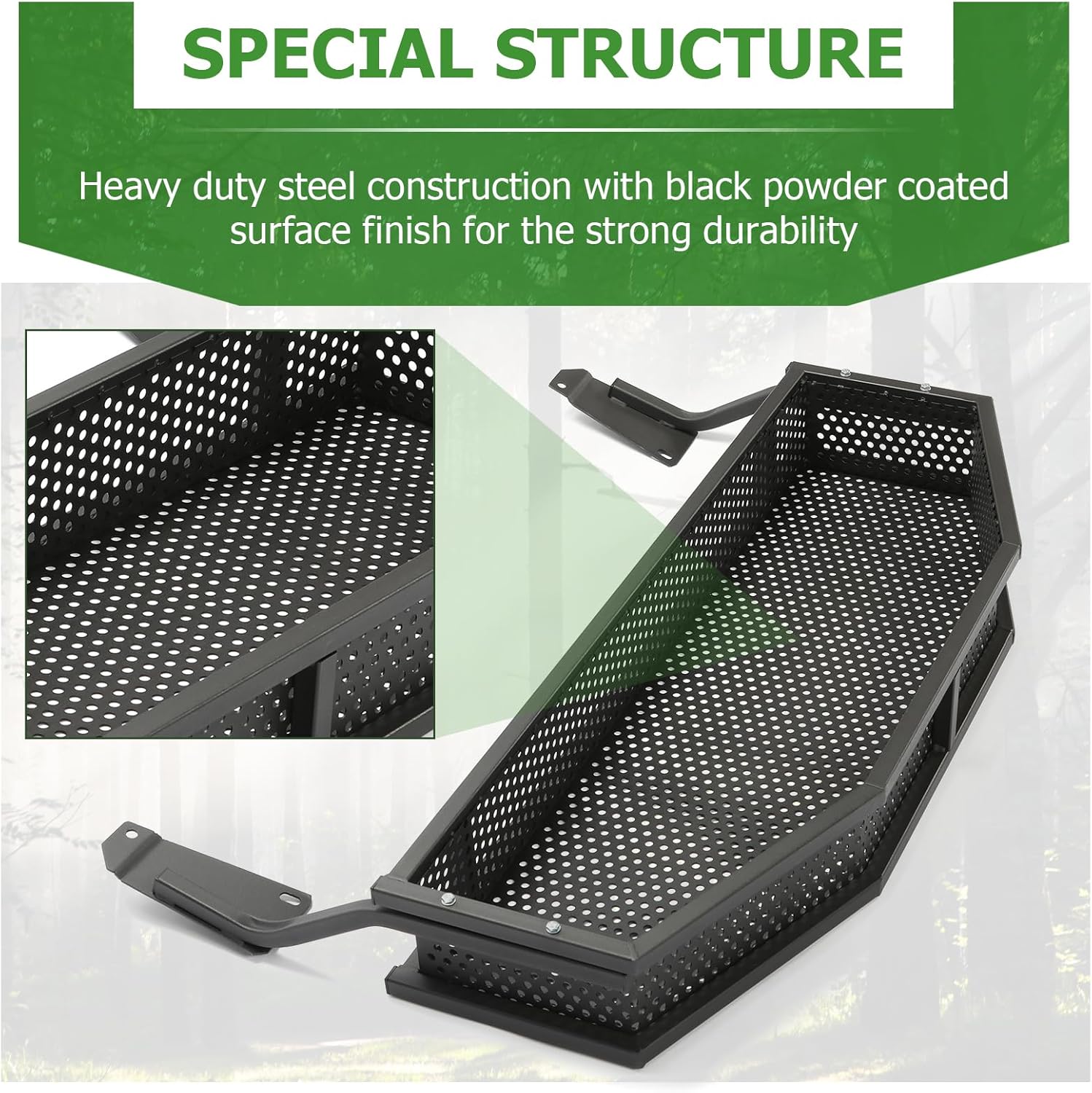 - Superior Material: Heavy duty steel construction with black powder coated surface finish for the strong durability. Front clay outer cargo basket is made of high quality Steel, with strong bearing capacity and impact resistance, wear resistance, durable, not easy to damage, fully able to meet your use needs.
