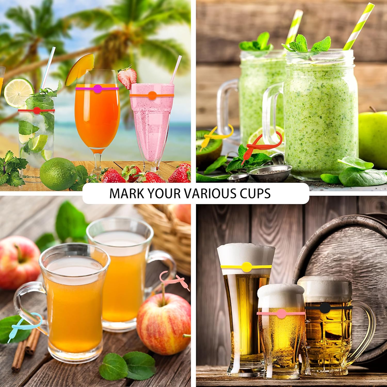 Lasiyanor Cup Markers for Drinks, 24Pcs Silicone Drink Marker Bands Bottle Strip Tag for Bar Party Martinis Cocktail Champagne Stem Glasses