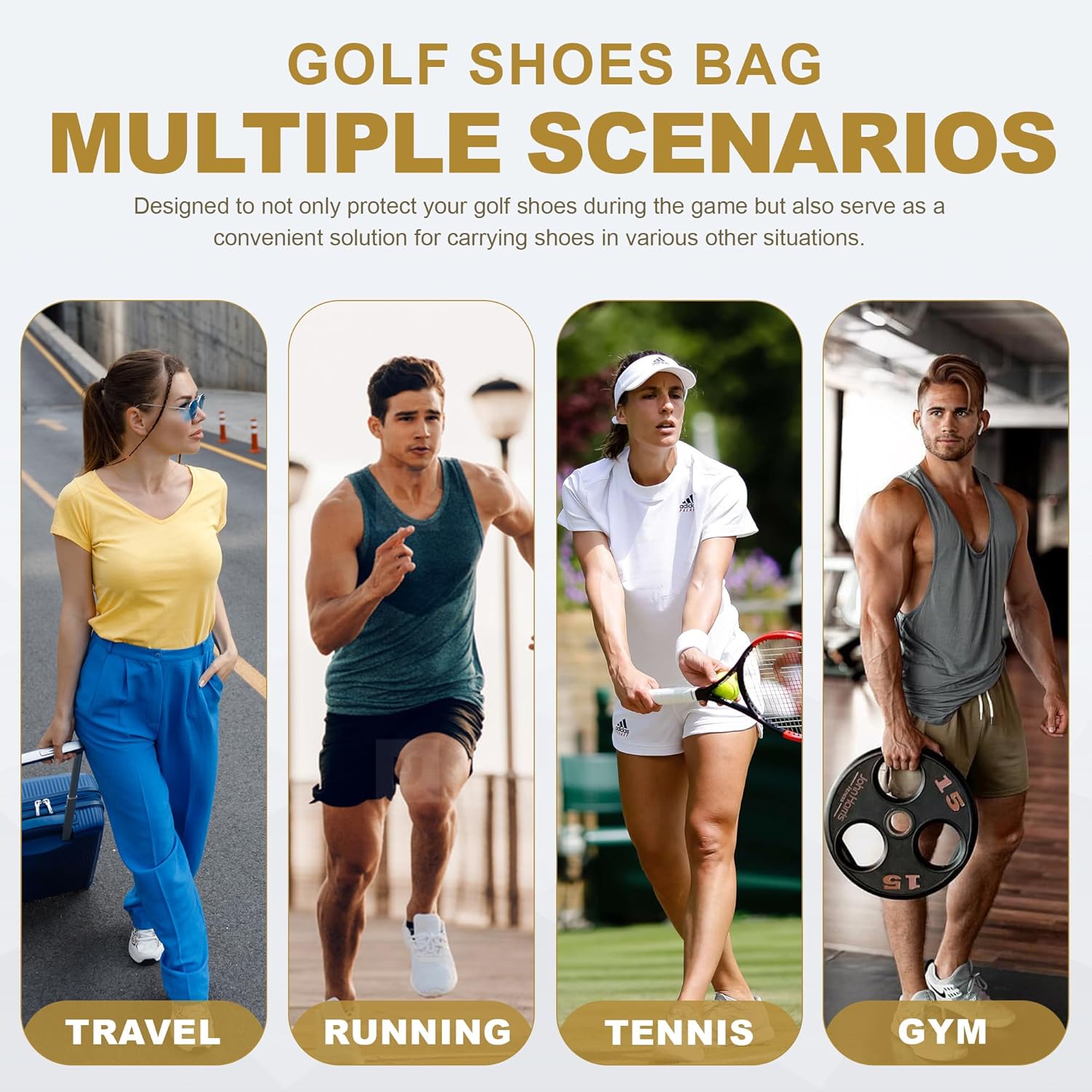 - 【Shoe Bag for Any Occasion】Golf shoe bag design for travel not only can be used for golf in mind but also useful for any athletic shoes - baseball, basketball, soccer cleats. Or used to carry and travel with your shoes for work - dress shoes, heels, etc