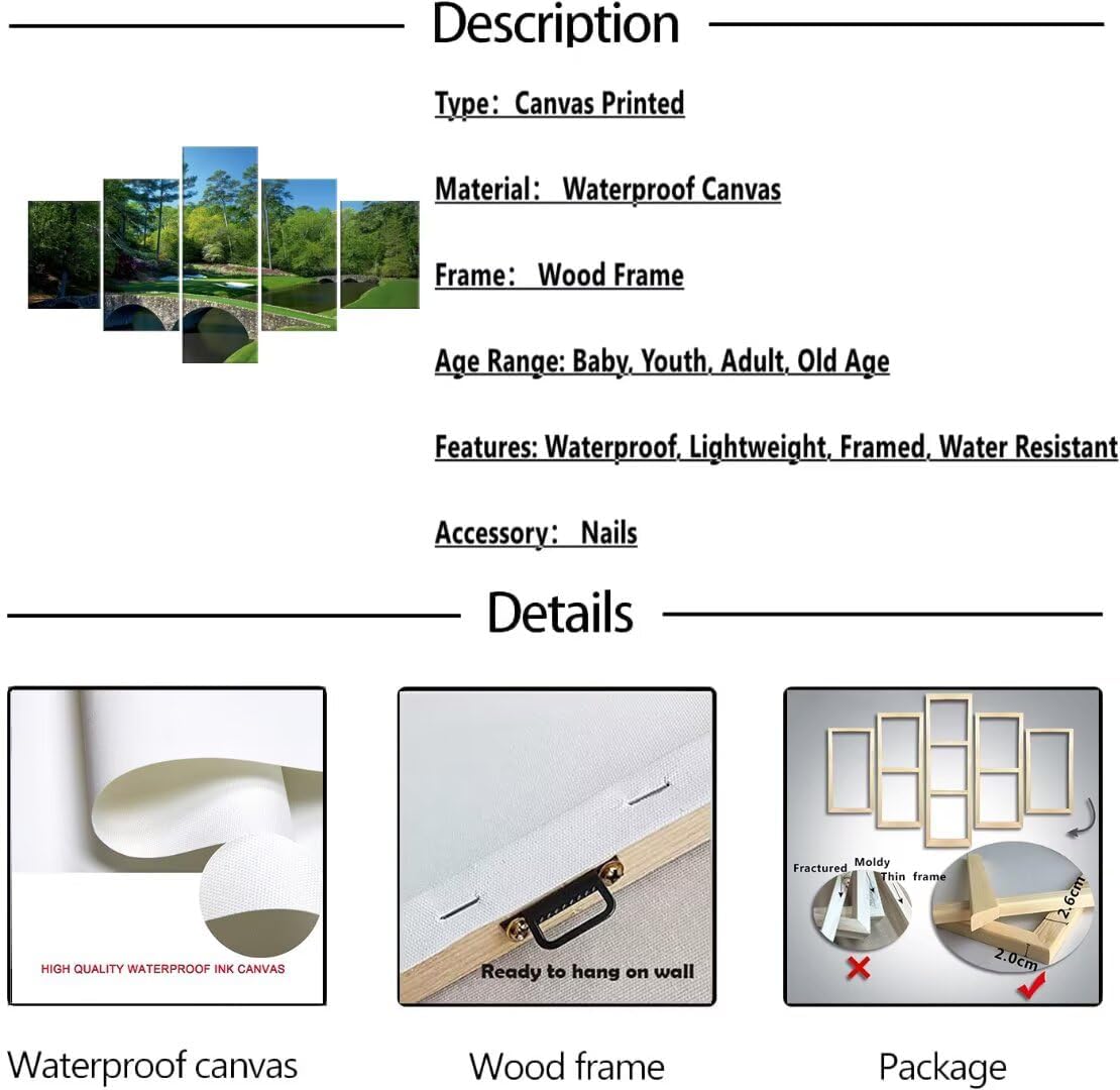 - 💝Golf course wall art size: 60Wx40H inch. Each panel size: 12x20inchx2,12x28inchx2,12x40inchx1,golf canvas prints easy ready to hang.