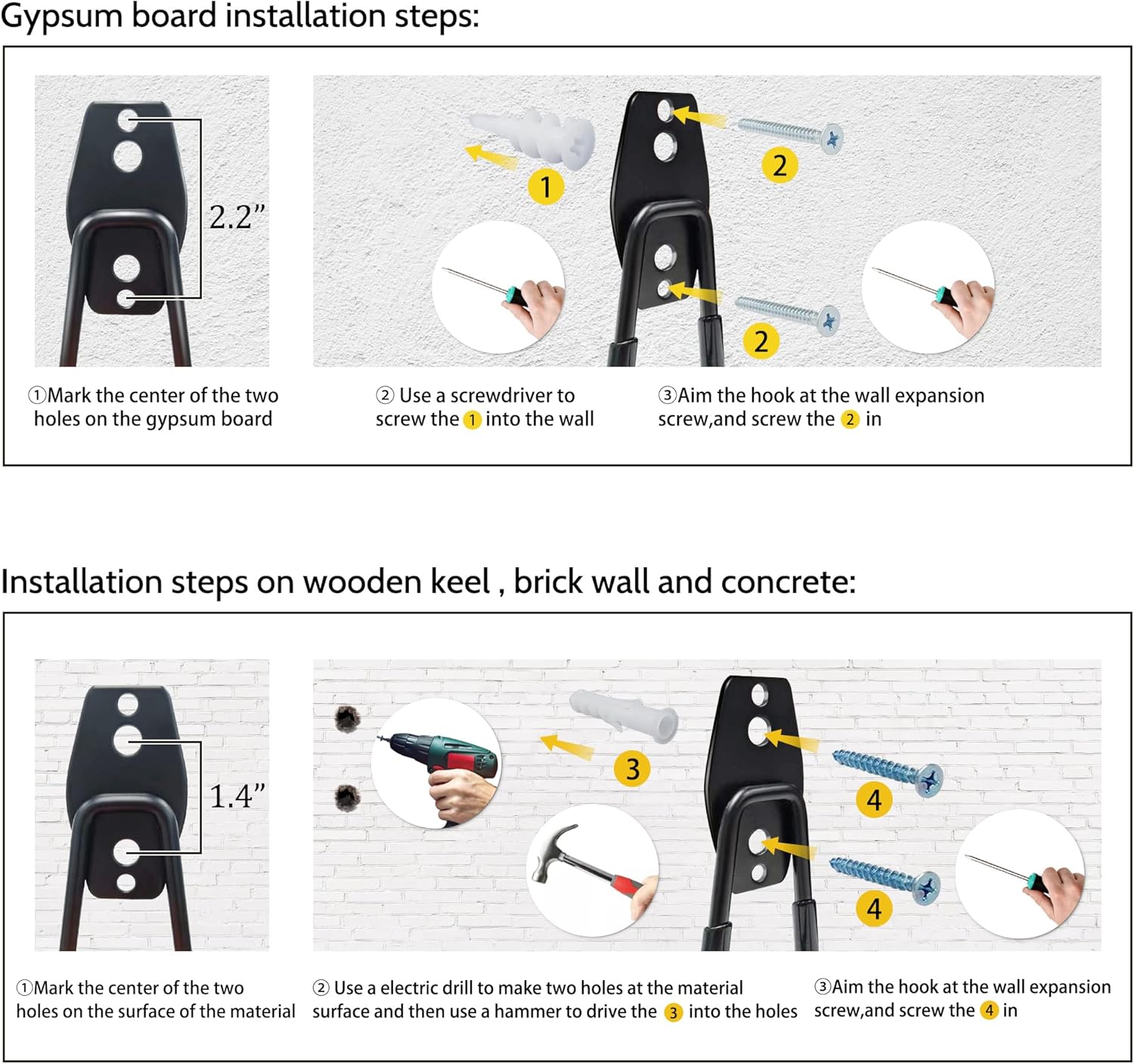 - Universal Installation: Whether it's wooden walls, drywall, or concrete, our wall hanger hooks come with 2 sets of screws that fit various wall types, allowing you to start your wall-mounted storage journey immediately without needing professional installation