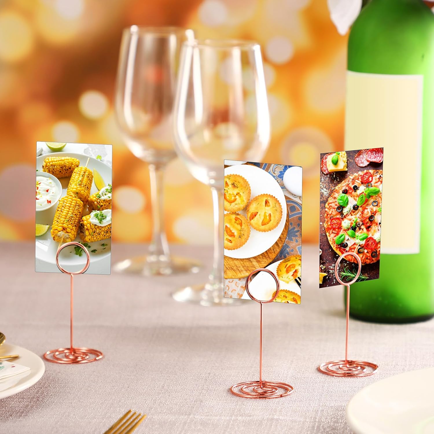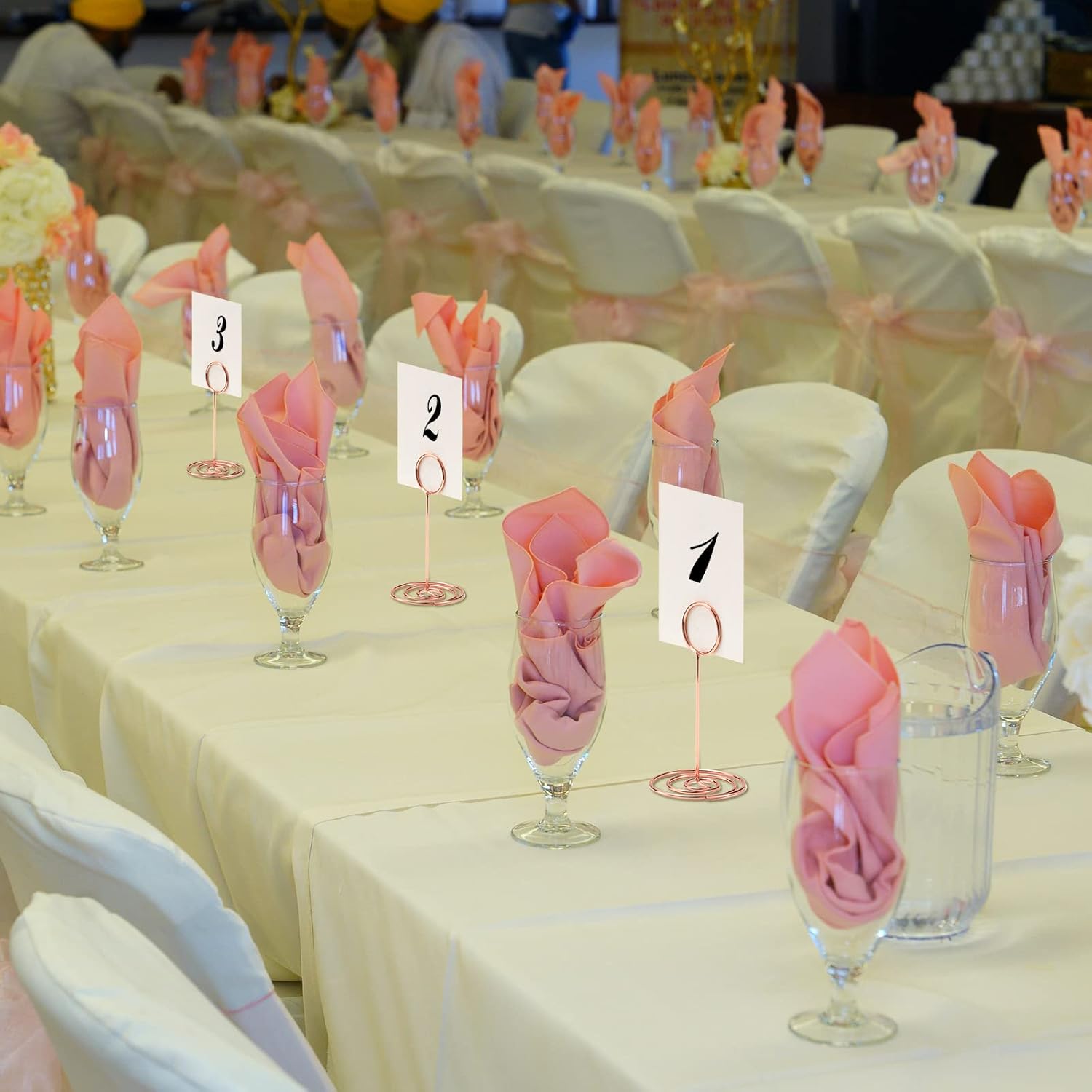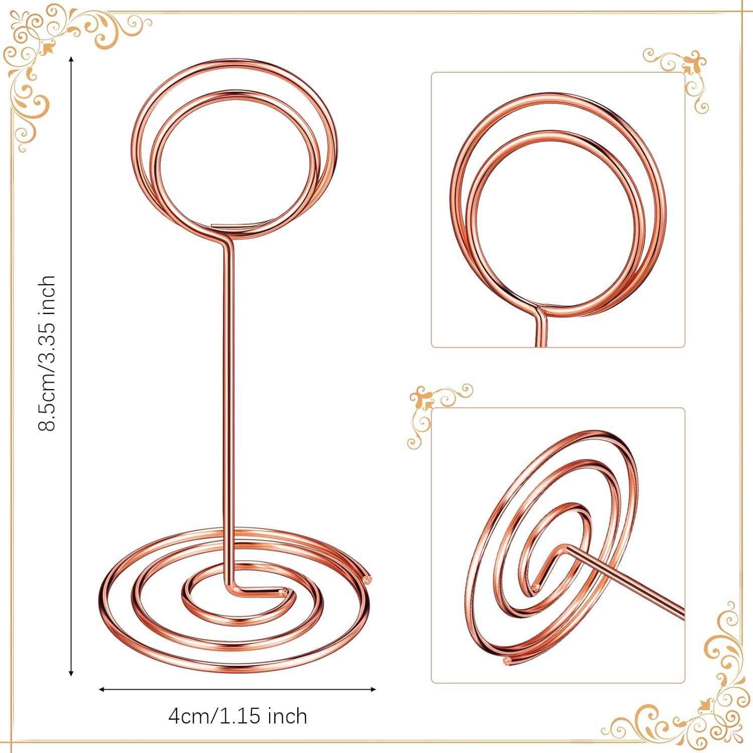 TecUnite 24 Pieces 3.35 Inch Table Number Holder Place Card Photo Holder Picture Name Menu Clips Memo Cards Stand for Wedding Reception Anniversary Birthday Party Centerpieces (Rose Gold)