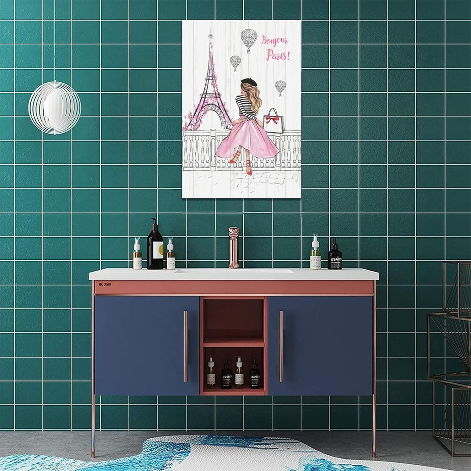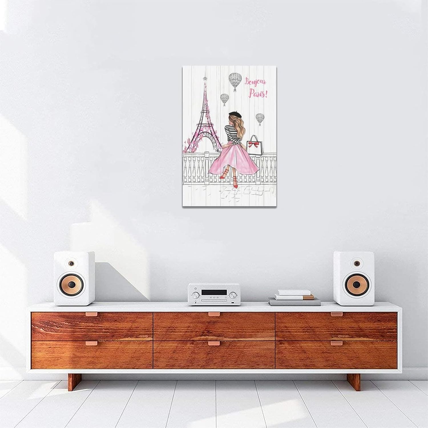 Pink Eiffel Tower Wall Art Romantic Paris Fashion Women Canvas Wall Decor Butterfly Eiffel Tower Picture Painting Print Modern Atwork For Girls Women Room Bathroom Office Framed Ready to Hang 16"x24"