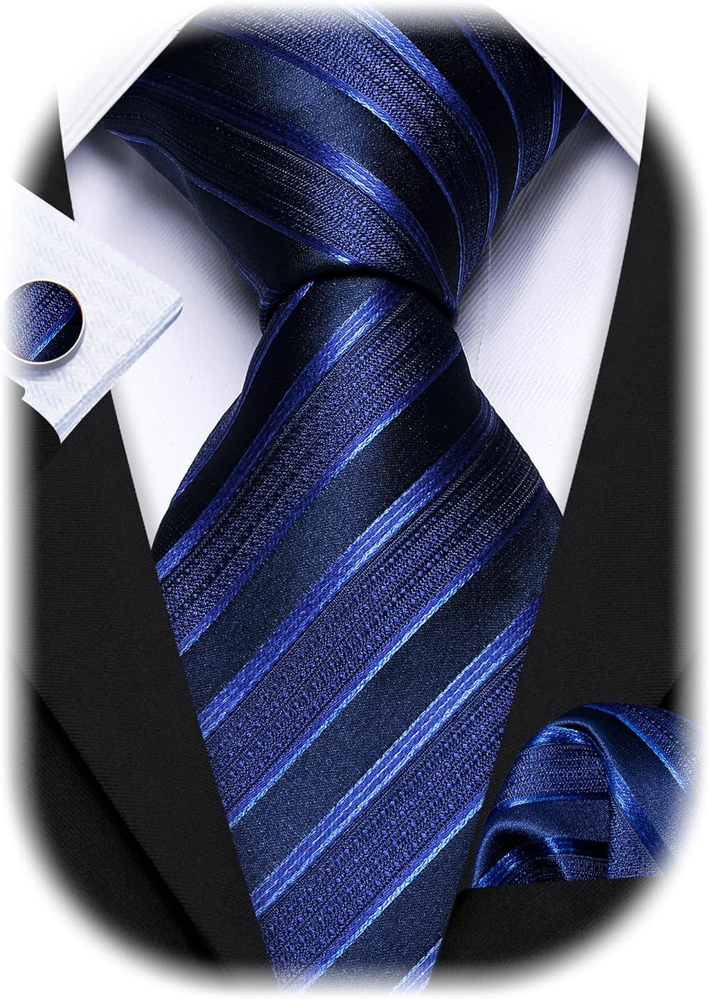 - Excellent Material:Stainless steel for cufflinks& silk for tie and hanky,1200 stiches woven craft to guarantee durability and wearability.You can feel the different texture on it.
