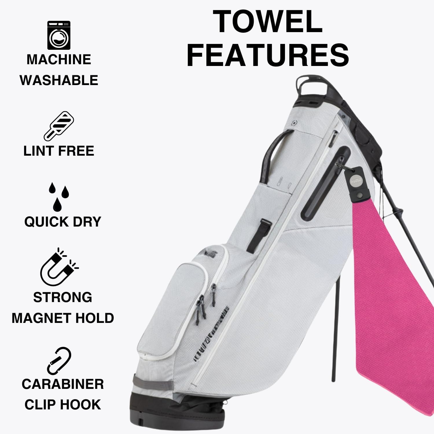 Magnetic Golf Towels for Golf Bags with Clip & Ultra Strong Magnet - Waffle Weave Microfiber Towel for Secure Hold on Bags & Carts - Ideal Club Cleaner & Accessories - Pink