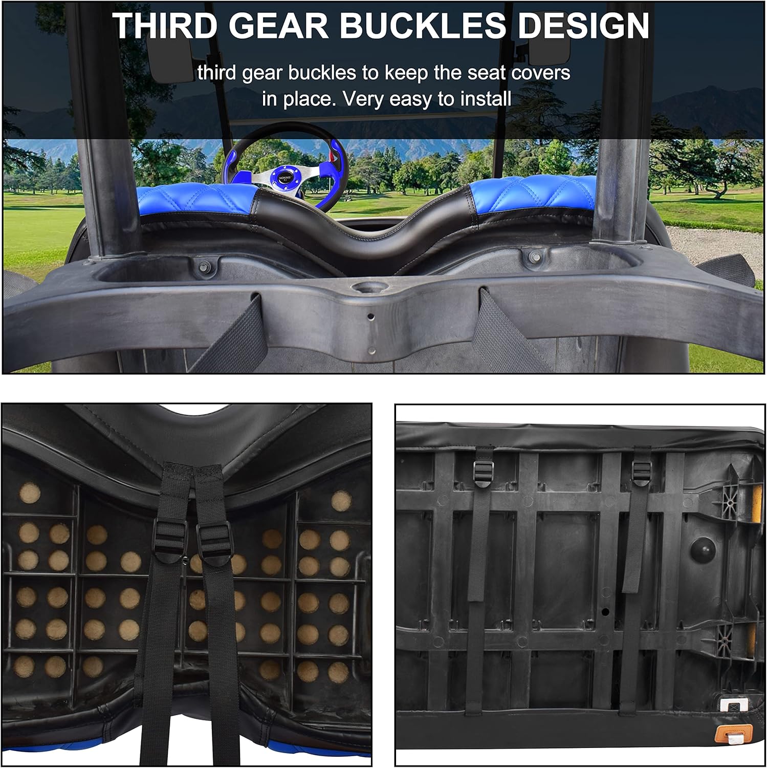 - 【Diamond Appearance Design】Golf cart front seat cover with diamond appearance design adds a touch of luxury and elegance to your golf cart, which will surely turn heads on the course. Premium and durable PVC vinyl leather brings ultimate enjoyment and comfort to your golf cart.